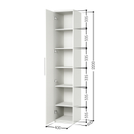 Габариты внешние: ширина 400 мм. глубина 600 мм. высота 2200 мм. Гарантия: 18 месяцев, Штанга для вешалок: нет, Страна производства: Россия, Материал корпуса: ЛДСП, Количество дверей: 1, Зеркало в дверце: Есть.