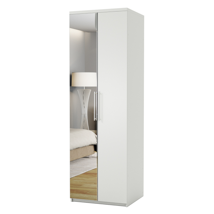 Габариты внешние: ширина 700 мм. глубина 600 мм. высота 2200 мм. Гарантия: 18 месяцев, Штанга для вешалок: нет, Страна производства: Россия, Материал корпуса: ЛДСП, Количество дверей: 2, Зеркало в дверце: Есть.