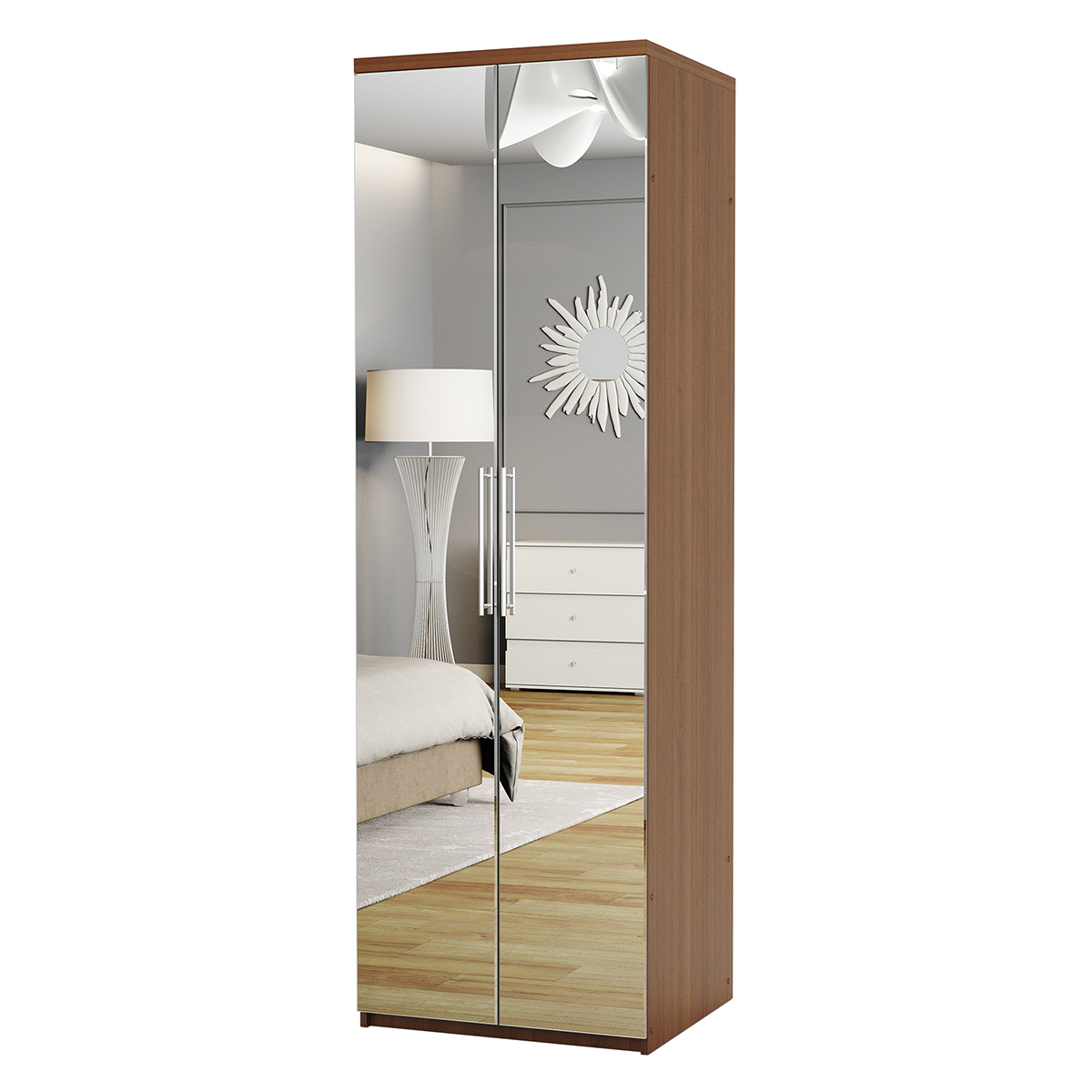 Шкаф с полками Комфорт МП-21 80х60 с зеркалами (Орех)