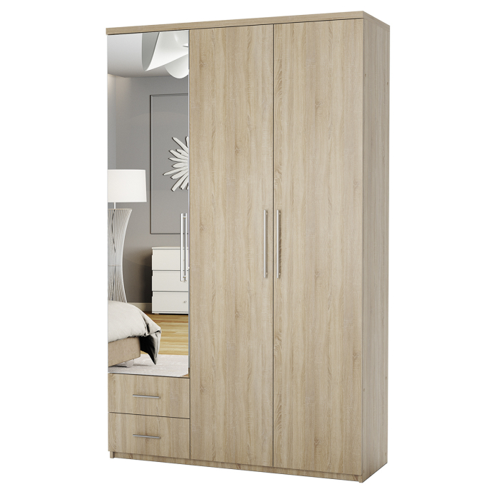 Шкаф трехдверный Комфорт МКЯ-32/1 135х60 с зеркалом (Дуб Сонома)