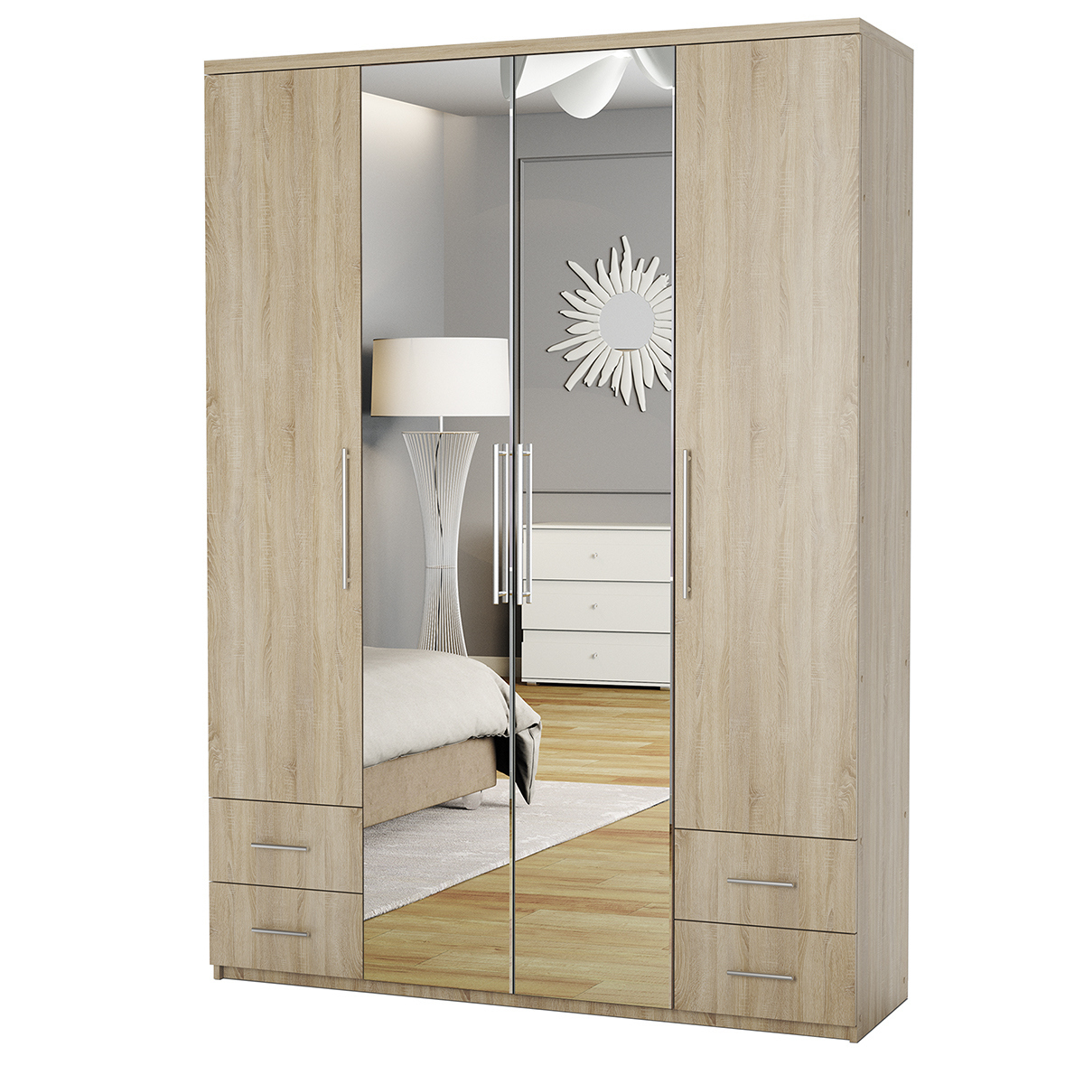 Шкаф четырехдверный Комфорт МКЯ2-43 180х45 с зеркалами (Дуб Сонома)