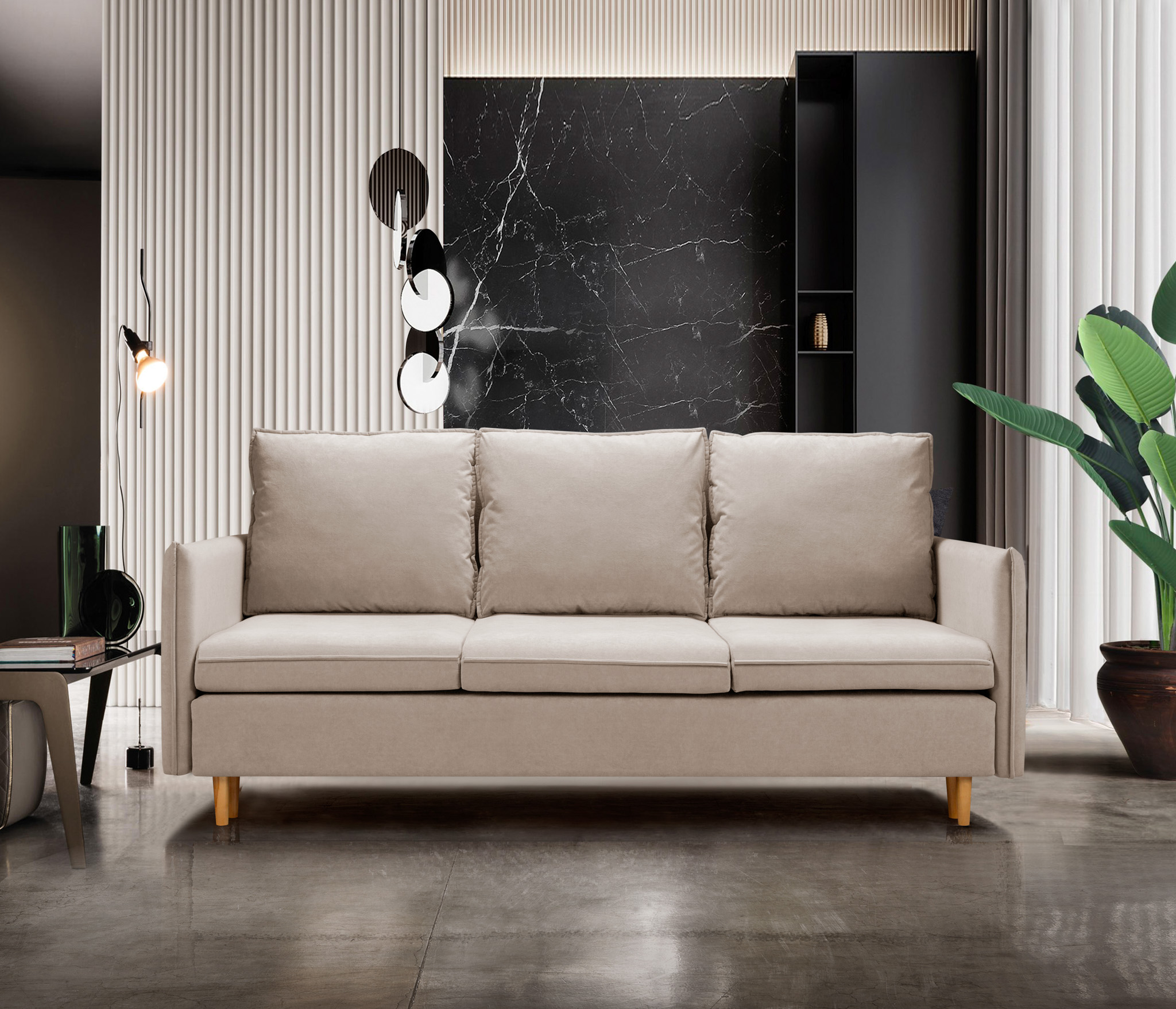 Диван легко превращается в удобное спальное место.