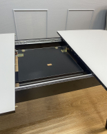 Компактный и очень функциональный стол, идеален для использования как на небольшой кухне, так и в качестве уютной обеденной зоны в гостиной. Столешница из стекла надежно защищает стол от влаги и горячего. Синхронный механизм раскладки позволяет легко раздвинуть стол одной рукой любому члену семьи. Вставка с материалом столешницы оставляет стол монолитным в разложенном состоянии. Стол максимально устойчив благодаря особому, усиленному креплению опор и регулировочным винтам.