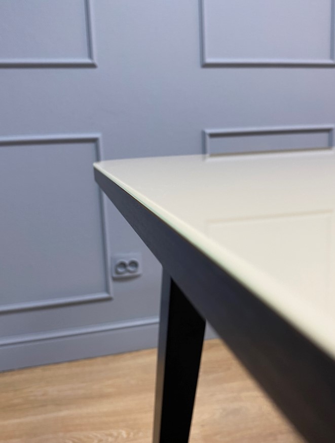 Стекло является оптимальным на сегодняшний день материалом для столешницы по соотношению цена-качество. КЕННЕР применяет дорогое, просветленное стекло optiwhite которое передает чистый, аркий цвет без зеленого бутылочного оттенка. Стекло надежно крепится к подложке из ЛДСП на герметик, распределенный по всей поверхности столешницы.