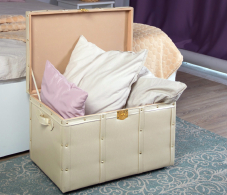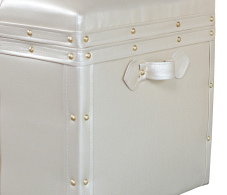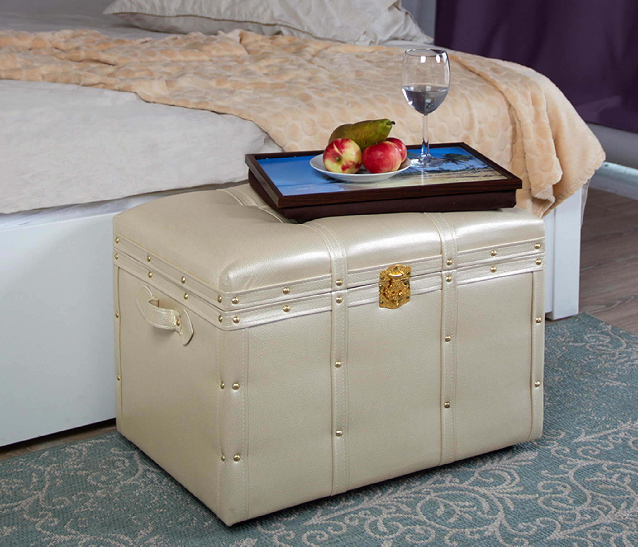Банкетка ""Жемчужина"" с ящиком для хранения малая представлена в виде напольного сундука в классическом стиле. Пуфик удивительно красив и функционален: может использоваться и как пуф-банкетка и как объемный короб для хранения. Используемая для его обивки перламутровая экокожа с лазерным покрытием придаст лоск и шик практически любому интерьеру. Дизайн сундука банкетки выполнен в старинной манере - с ремнями и декоративными золотыми гвоздями и замком. . Сундук стоит на пластиковых ножках. Пуфик подойдет в прихожую, коридор, в спальню, в гостинную, в детскую, в кухню, в зал прекрасно впишется в любой интерьер офиса, дома или дачи. Пуф мягкий идеальный подарок мужчине или женщине на свадьбу, годовщину или юбилей. Подарок любимой, маме, жене, подруге. Сундук очень удобен в использовании в качестве пуфа или банкетки. Его крышка изготовлена из прочного материала, способного выдерживать большую вертикальную нагрузку до 1500кг. Объемное внутреннее пространство банкетки, отделанное спанбондом, позволяет хранить различные предметы домашнего обихода и вещи. Элегантный пуфик банкетка будет служить местом для сидения и дополнительным местом для хранения. Пуфики удобны в качестве тумбы, прикроватного туалетного столика, полки, обувницы, стула, коробки для хранения. В ящик банкетки можно сложить обувь, книги, игрушки , постельное белье. Пуф с крышкой , банкетки разных цветов , размеров и фактур : большие, высокие, круглые, велюр, из рогожки, на ножках и без, из экокожи, ткани, с каретной стяжкой представлены в нашем магазине. Банкетку удобно использовать для сидения и в качестве подставки для ног или лежака для животных. Прочный каркас, качественные материалы, эксклюзивный дизайн, стильная обивка не оставят равнодушными взрослых и детей. Наполнитель для пуфа упругий поролон. Такой пуфик-банкетка альтернатива круглому пуфу, бескаркасному пуфу, отличная замена пуфа мешка.