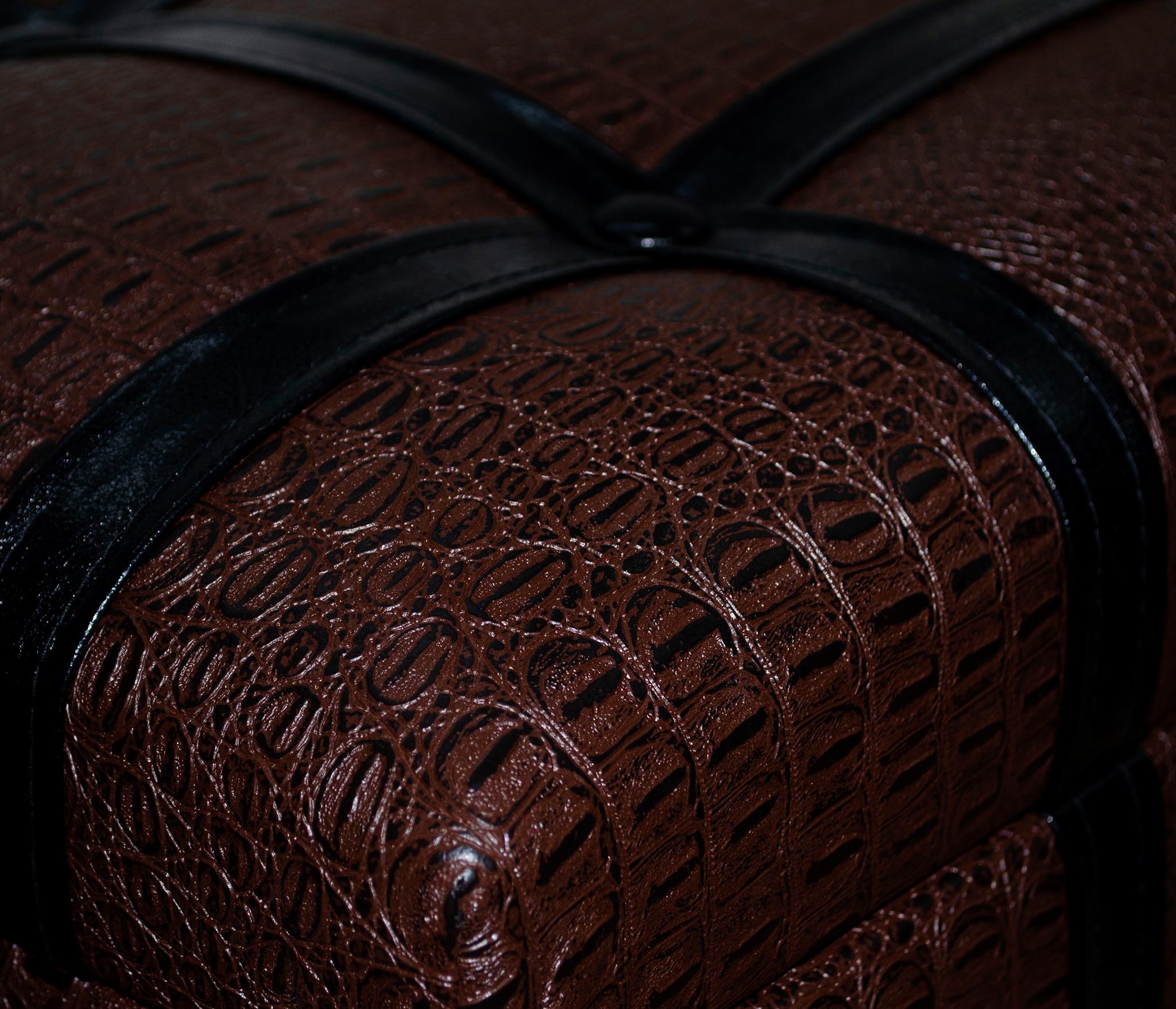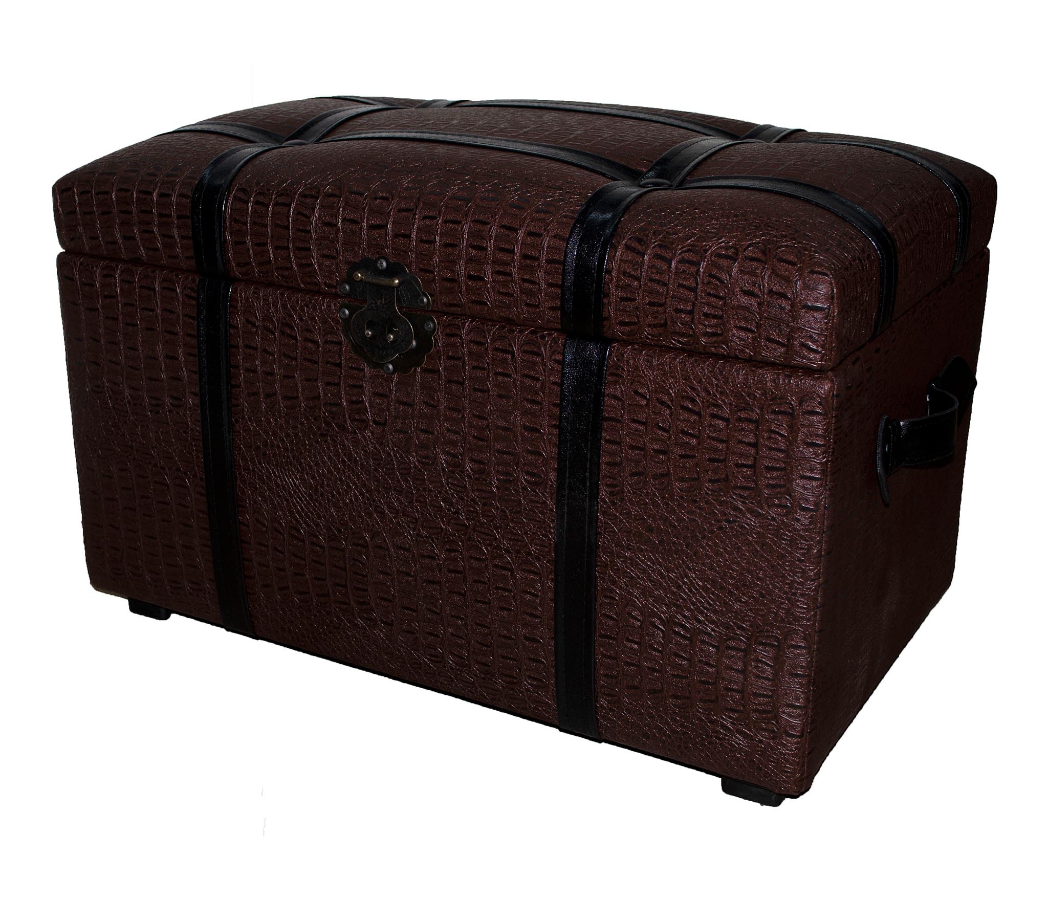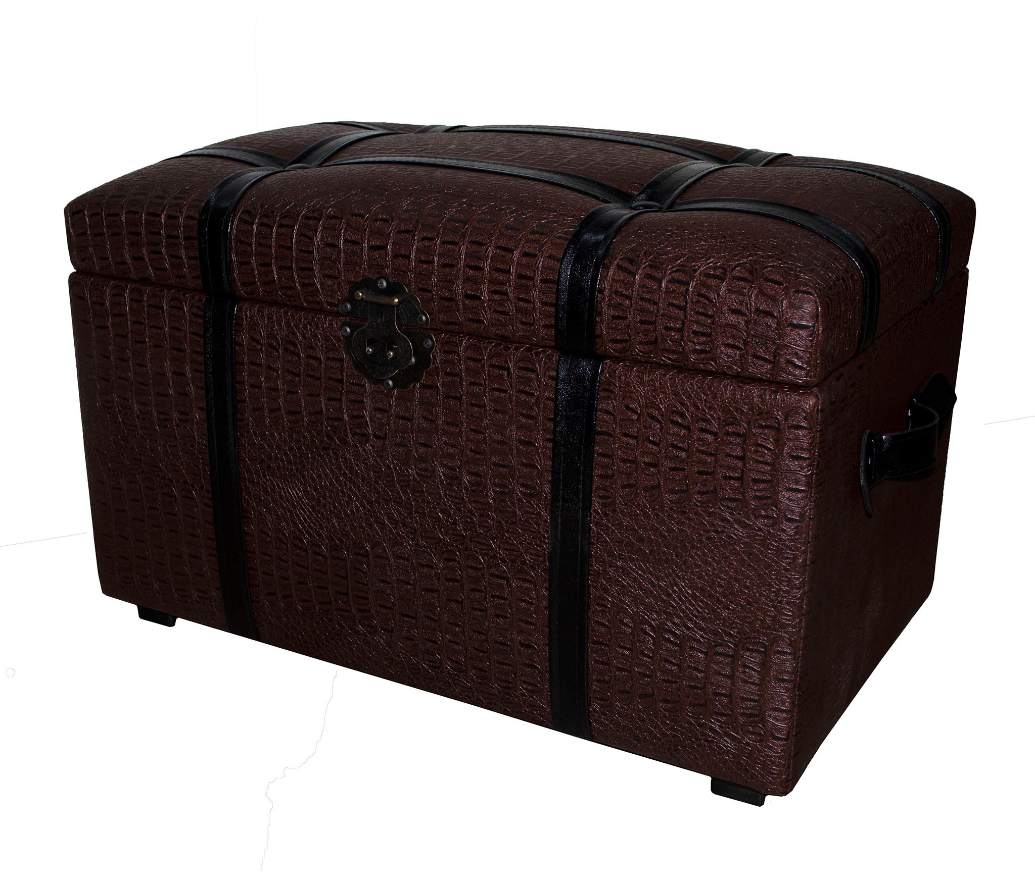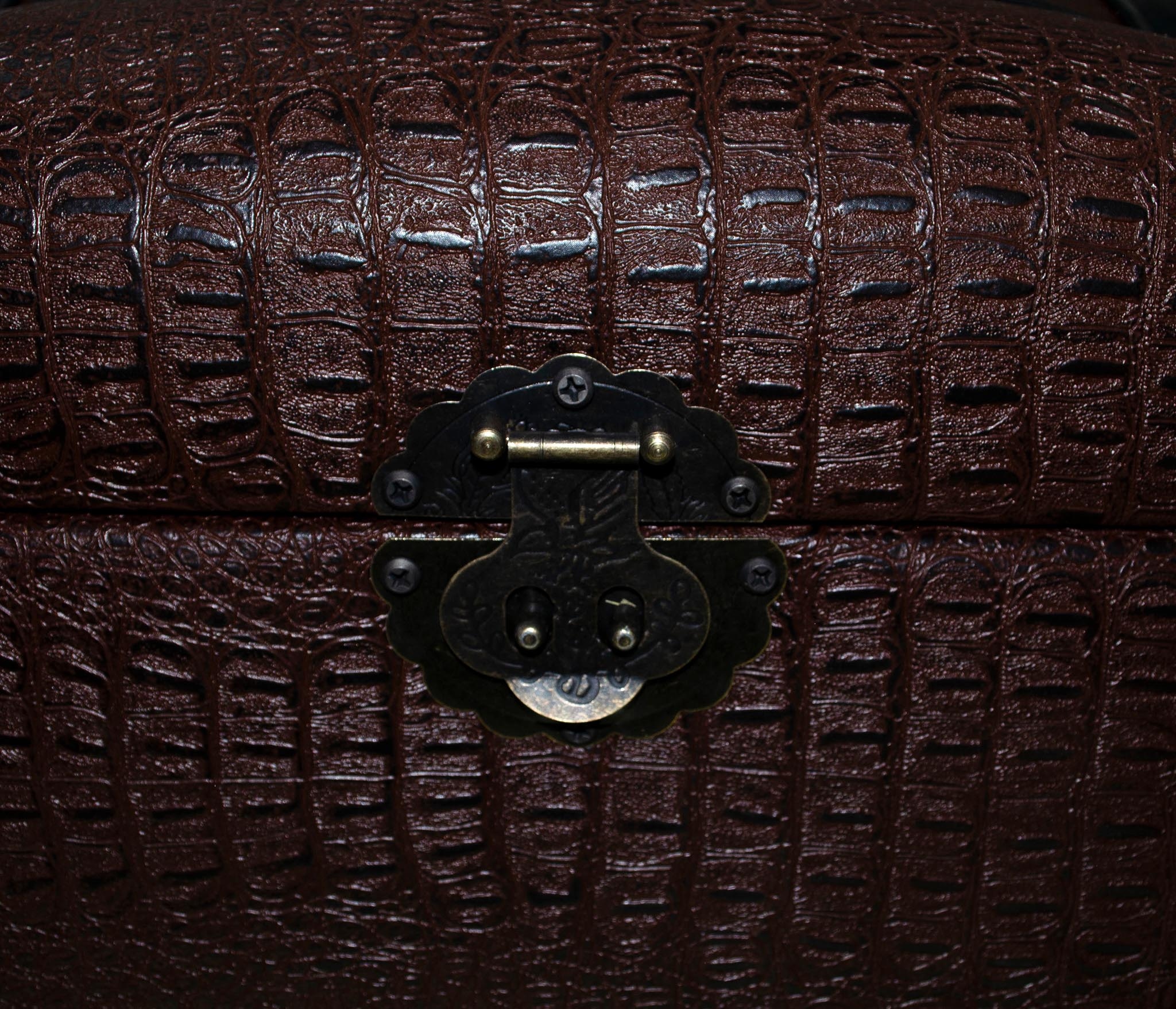 Банкетка "Алигатор" с ящиком для хранения представлена в классическом дизайне под "крокодиловую кожу" коричневого цвета. Мебель из такой кожи будет смотреться гармонично в любом интерьере дома или дачи- от классики до хай-тека. Сундук банкетка имеет пластиковые ножки и декоративный металлический замок. Пуфик подойдет в прихожую, коридор, в спальню, в гостинную, в детскую, в кухню, в зал прекрасно впишется в любой интерьер офиса, дома или дачи. Пуф мягкий идеальный подарок мужчине или женщине на свадьбу, годовщину или юбилей. Подарок любимой, маме, жене, подруге.  Сундук очень удобен в использовании в качестве пуфа или банкетки. Его крышка изготовлена из прочного материала, способного выдерживать большую вертикальную нагрузку до 150 кг. Объемное внутреннее пространство банкетки, отделанное бежевым спанбондом, позволяет хранить различные предметы домашнего обихода и вещи. Элегантный пуфик банкетка будет служить местом для сидения и дополнительным местом для хранения. Пуфики удобны в качестве тумбы, прикроватного туалетного столика, полки, обувницы, стула, коробки для хранения. В ящик банкетки можно сложить обувь, книги, игрушки , постельное белье. Пуф с крышкой , банкетки разных цветов , размеров и фактур : большие, высокие, круглые, велюр, из рогожки, на ножках и без, из экокожи, ткани, с каретной стяжкой представлены в нашем магазине.  Банкетку удобно использовать для сидения и в качестве подставки для ног или лежака для животных. Прочный каркас, качественные материалы, эксклюзивный дизайн, стильная обивка не оставят равнодушными взрослых и детей. Наполнитель для пуфа упругий поролон. Такой пуфик-банкетка альтернатива круглому пуфу, бескаркасному пуфу, отличная замена пуфа мешка.
