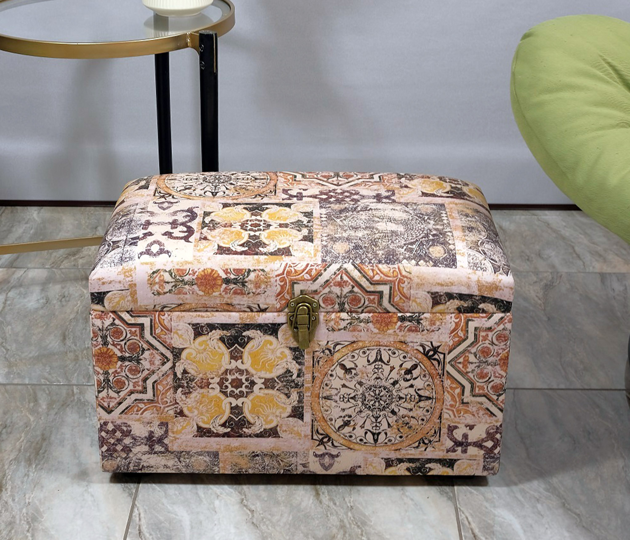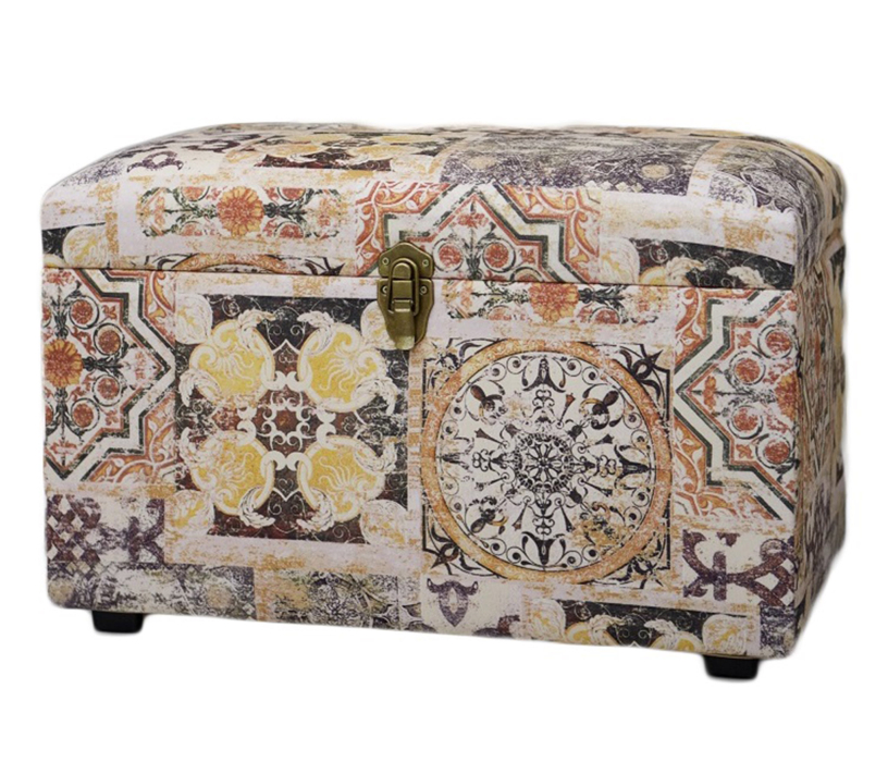 Банкетка "Восточный " с ящиком для хранения в восточном стиле сделан из бархата в желто-коричневом цвете. Изысканный сундук удобен в качестве банкетки или пуфика - имеет мягкое сиденье и выдерживает вес сидящего человека до 150 кг. Внутри сундука - огромное пространство, где можно хранить все: от детских игрушек до постельного белья, одежды, обуви. Пластиковые ножки, на которых стоит сундук, не царапают пол. Но и переносить его тоже достаточно легко - вес сундука всего около 7 кг. Пуфик в прихожую, коридор, в спальню, в гостинную, в детскую, в кухню, в зал прекрасно впишется в любой интерьер офиса, дома или дачи. Пуф мягкий идеальный подарок мужчине или женщине на свадьбу, годовщину или юбилей. Подарок любимой, маме, жене, подруге. Сундук подойдет к любому интерьеру дома, дачи,и смотрится дорого и презентабельно. Элегантный пуфик банкетка будет служить местом для сидения и дополнительным местом для хранения. Пуфики удобны в качестве тумбы, прикроватного туалетного столика, полки, обувницы, стула, коробки для хранения. В ящик банкетки можно сложить обувь, книги, игрушки , постельное белье. Пуф с крышкой , банкетки разных цветов , размеров и фактур : большие, высокие, круглые, велюр, из рогожки, на ножках и без, из экокожи, ткани, с каретной стяжкой представлены в нашем магазине. Банкетку удобно использовать для сидения и в качестве подставки для ног или лежака для животных. Прочный каркас, качественные материалы, эксклюзивный дизайн, стильная обивка не оставят равнодушными взрослых и детей. Наполнитель для пуфа упругий поролон. Такой пуфик-банкетка альтернатива круглому пуфу, бескаркасному пуфу, отличная замена пуфа мешка.