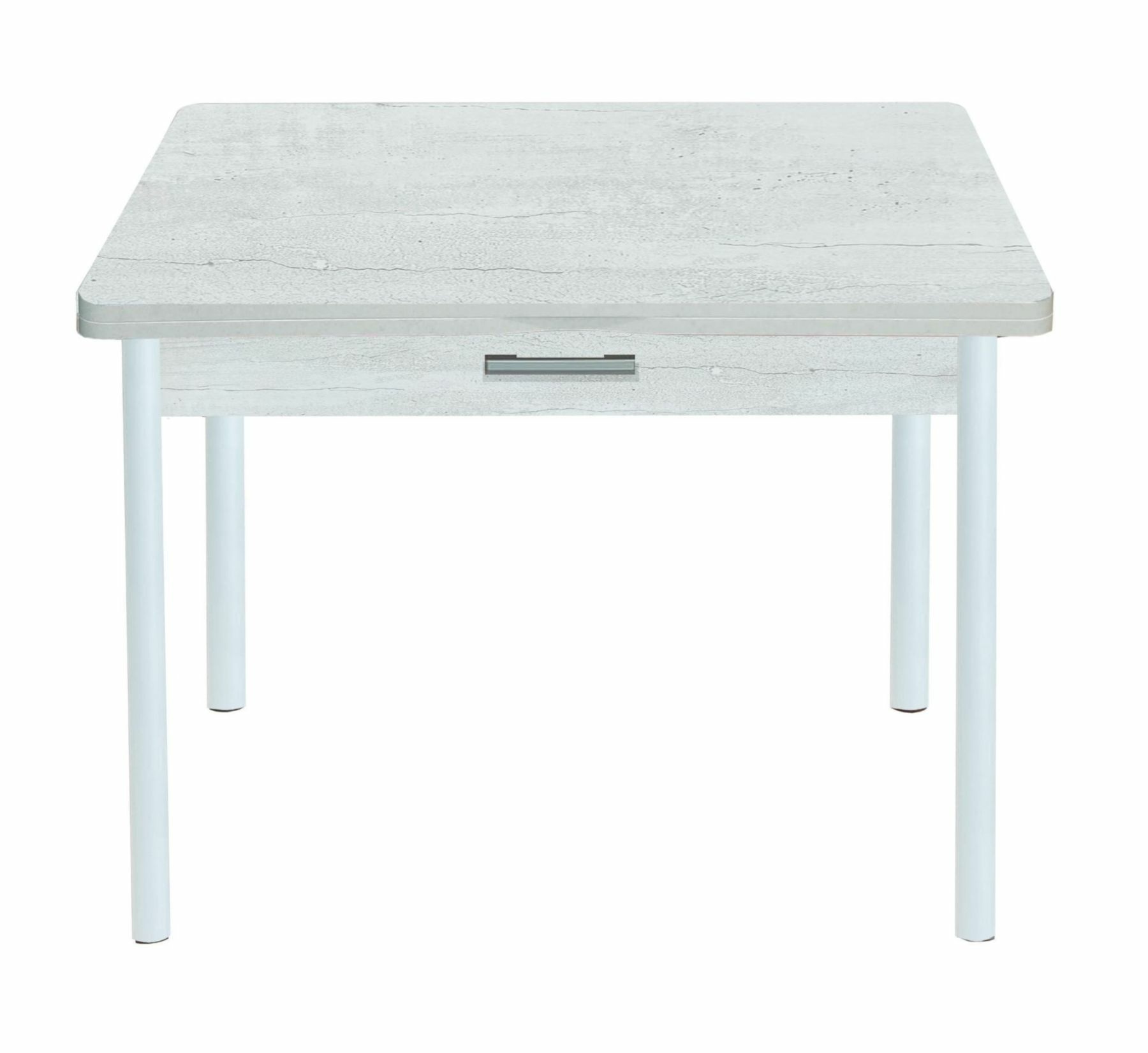 Стол изготовлен из ЛДСП высокого качества. Толщина столешницы 16 мм. Стол раскладной с использованием секретных петель. Ножки круглые металлические, покрытые порошковой краской. В столе есть выдвижной ящик.