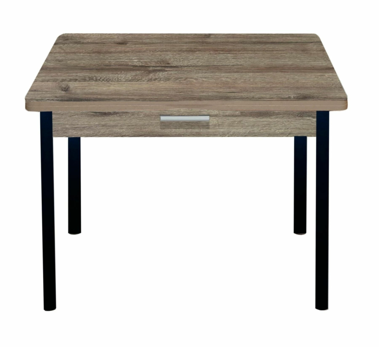 Стол обеденный СИМПЛ с ящиком в цвете дуб веллингтон - бюджетный и качественный вариант для кухни. Красивый цвет стола обязательно понравится всем домодчатцам. У стола раскладная столешница с размером в разложенном виде 900 х 1200 мм, в сложенном виде 600 х 900 мм.