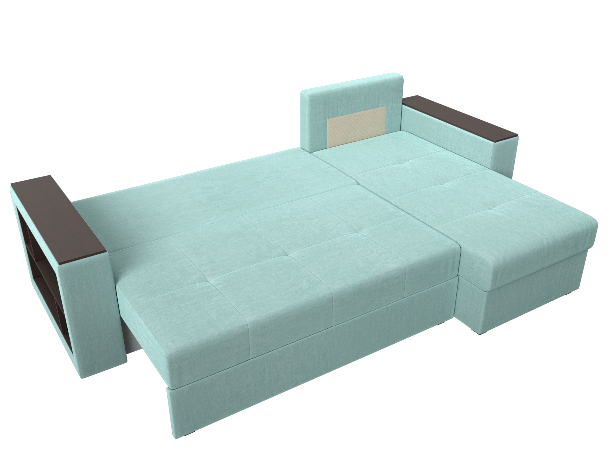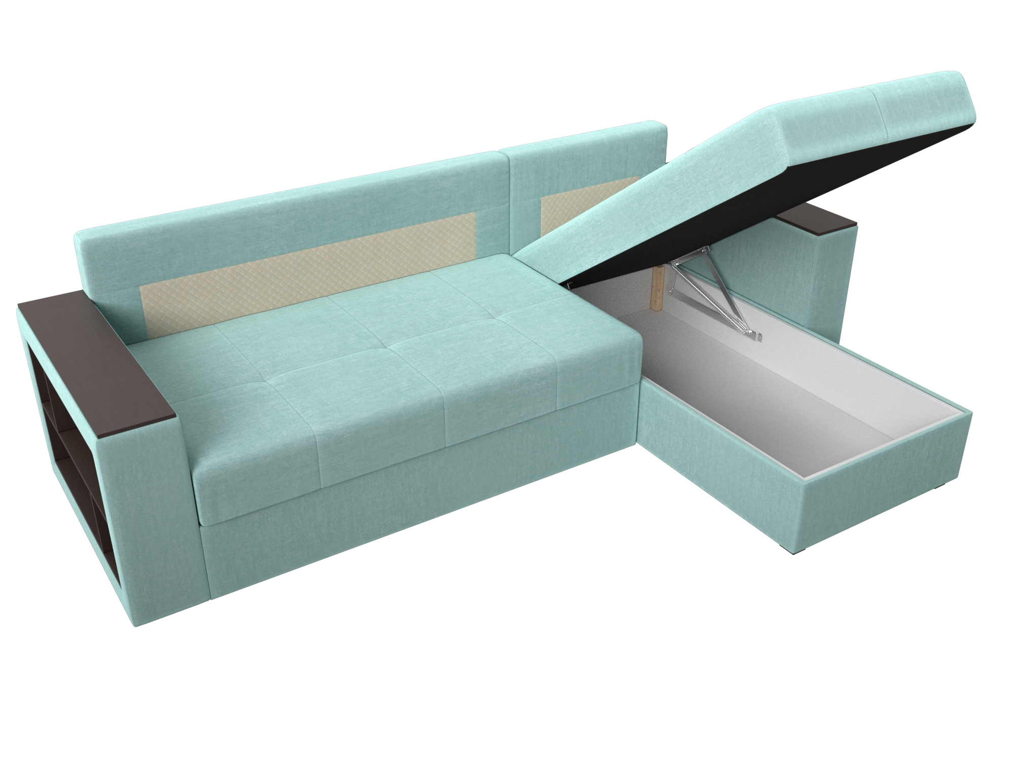 Угловой диван на ножках из серии Дубай Лайт станет функциональным дополнением гостиной. Мягкое сиденье и удобные подлокотники способствуют комфортабельному отдыху. Подлокотники выполняют функцию столика, а удобные боковые полочки.