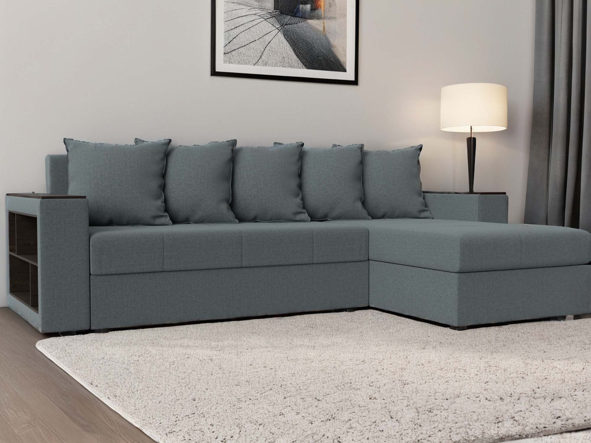Угловой диван на ножках из серии Дубай Лайт станет функциональным дополнением гостиной. Мягкое сиденье и удобные подлокотники способствуют комфортабельному отдыху. Подлокотники выполняют функцию столика, а удобные боковые полочки.