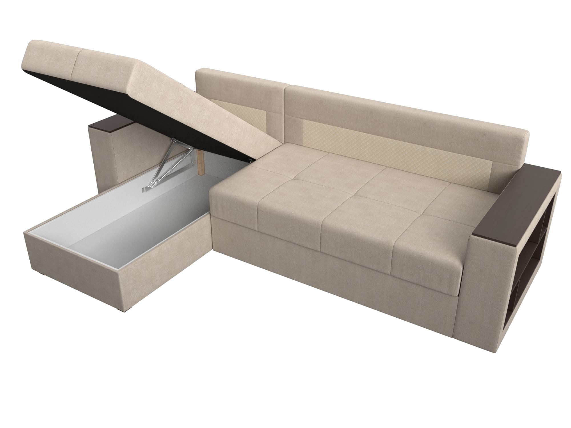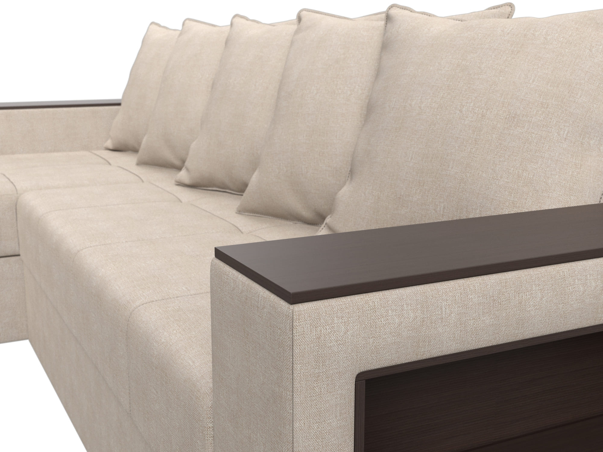 Угловой диван на ножках из серии Дубай Лайт станет функциональным дополнением гостиной. Мягкое сиденье и удобные подлокотники способствуют комфортабельному отдыху. Подлокотники выполняют функцию столика, а удобные боковые полочки.