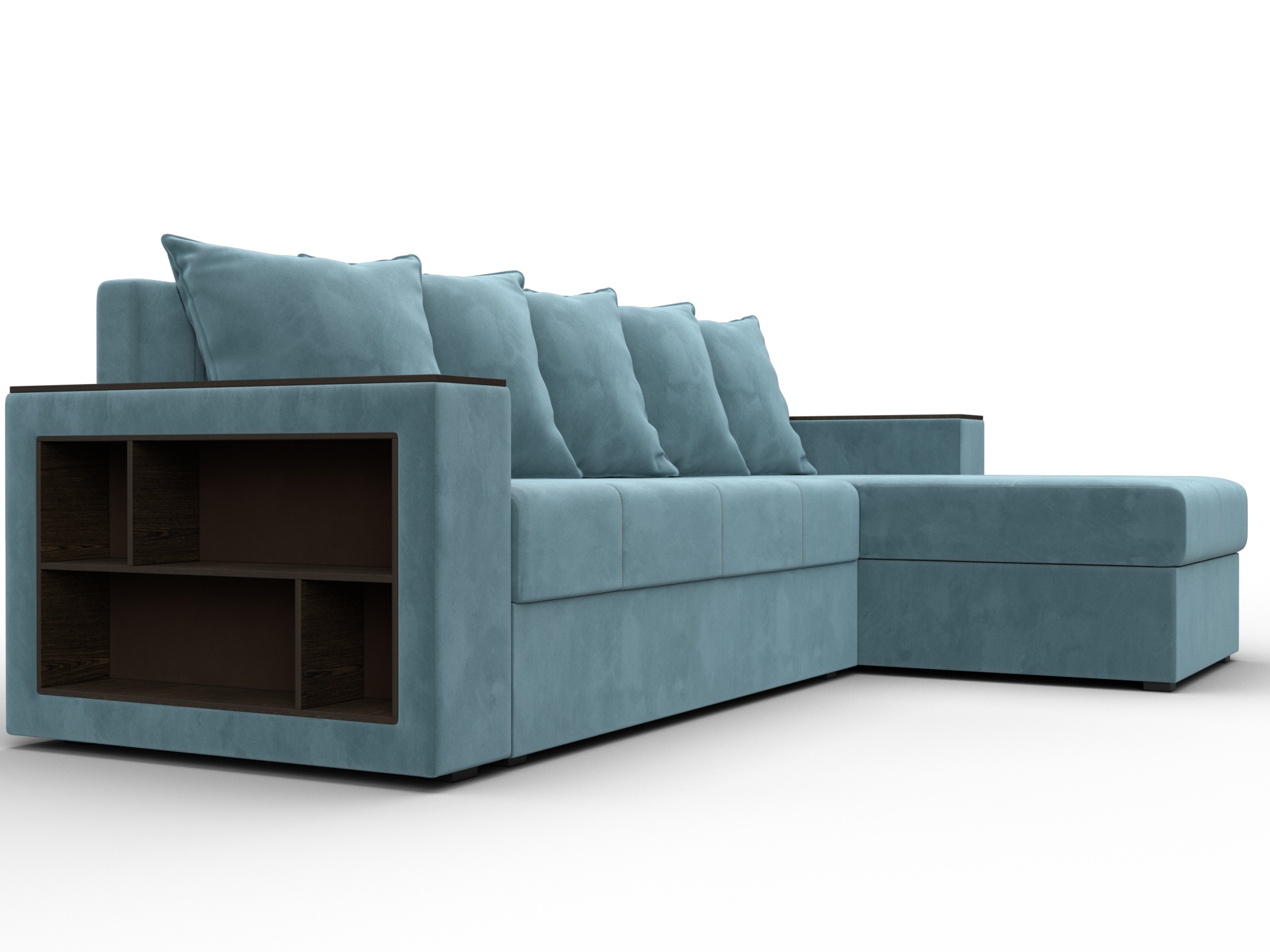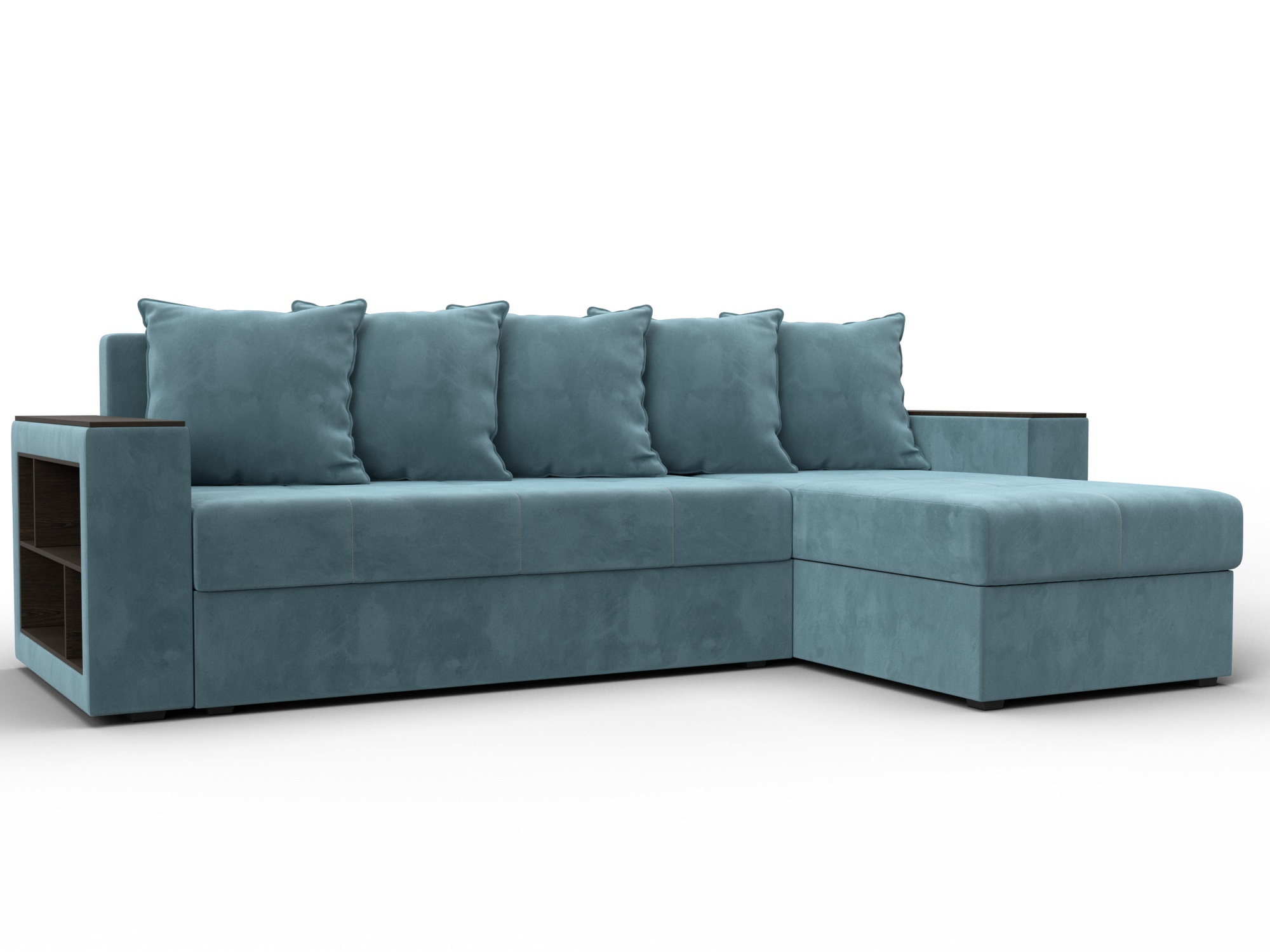 Угловой диван Дубай Лайт представляет собой бюджетный вариант современного раскладного дивана-кровати с интересным дизайном и прочным каркасом из ДСП, ЛДСП, бруса и фанеры. Пять больших мягких съемных подушек дополняют спинку изделия.Верх подлокотников – деревянные мини-столики. Под сиденьем расположены вместительные ящики для белья. Устойчивость и надежность конструкции обеспечивают пластиковые крепкие ножки. Угловой диван Дубай Лайт прекрасно впишется в интерьер как жилой комнаты, так и офиса. В качестве варианта для сна модель «Дубай Лайт» тоже отлично подойдет. При раскладывании длина автоматически станет шириной, что позволит свободно лечь двоим. Широкий выбор расцветок позволяет подобрать оптимальный вариант под стилистику помещения.