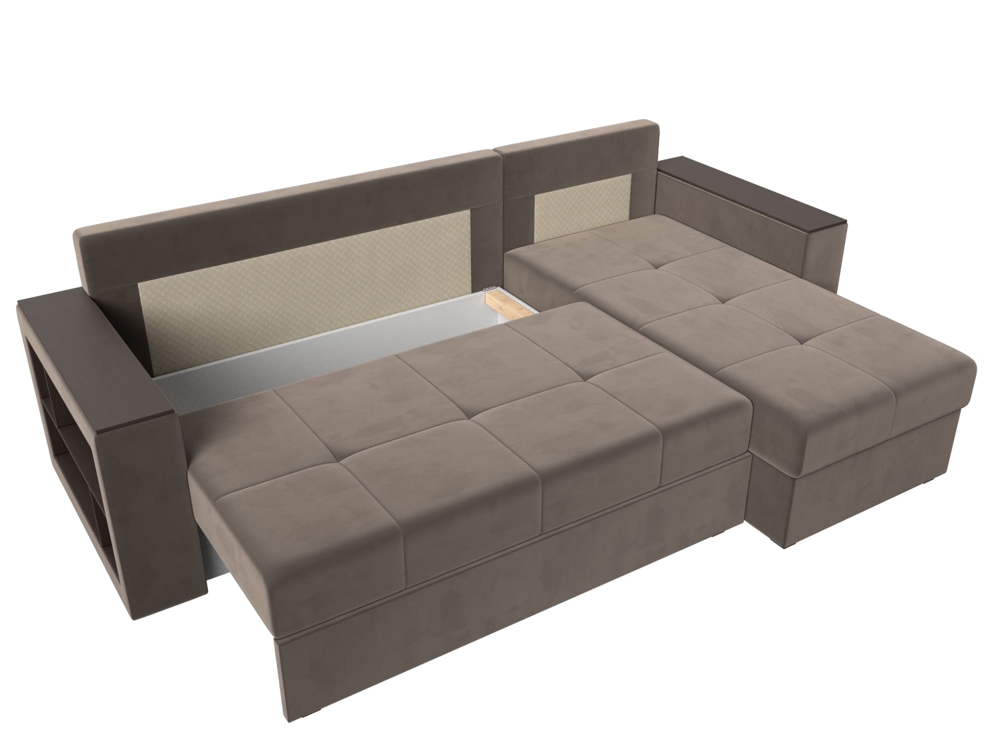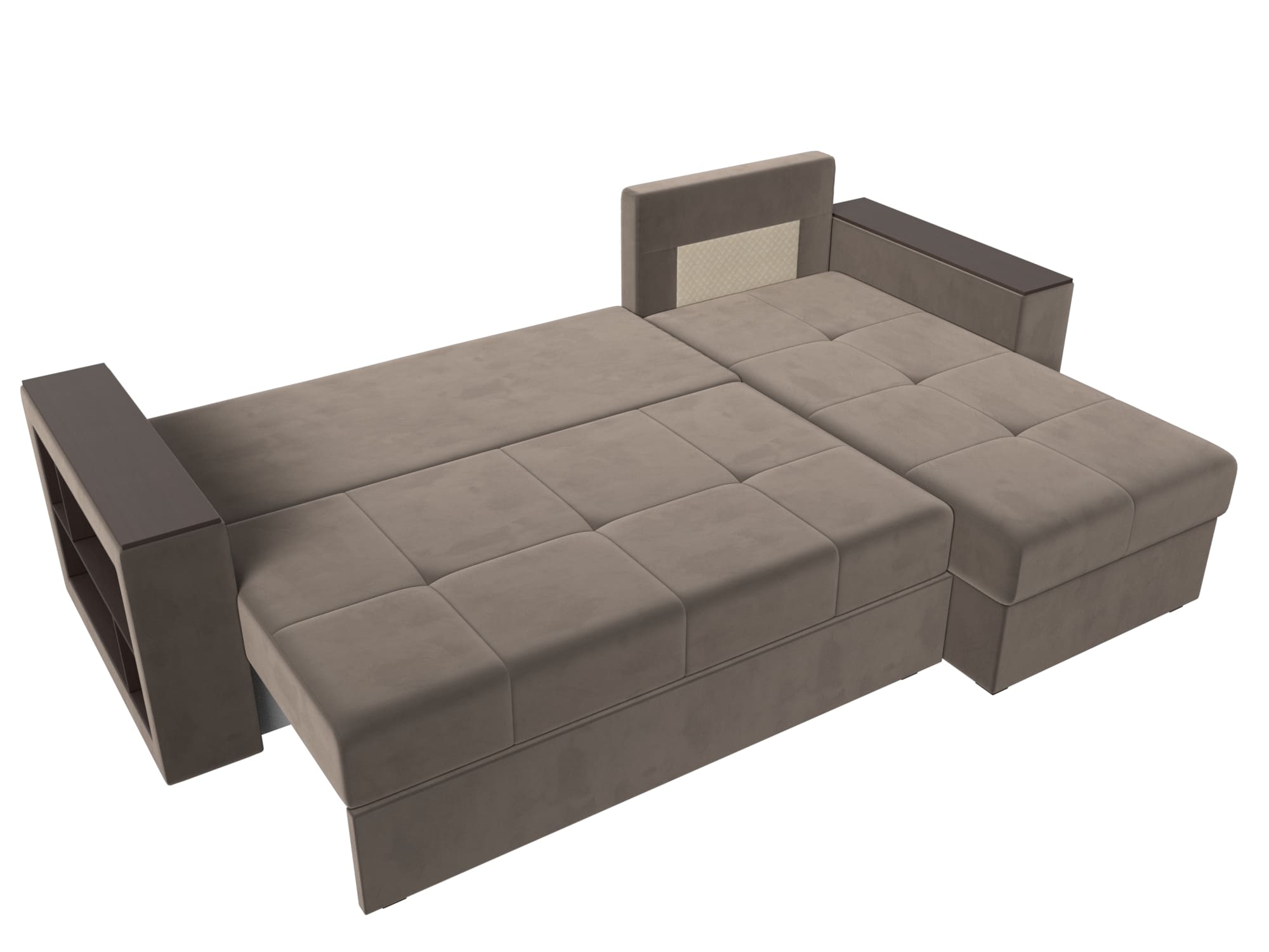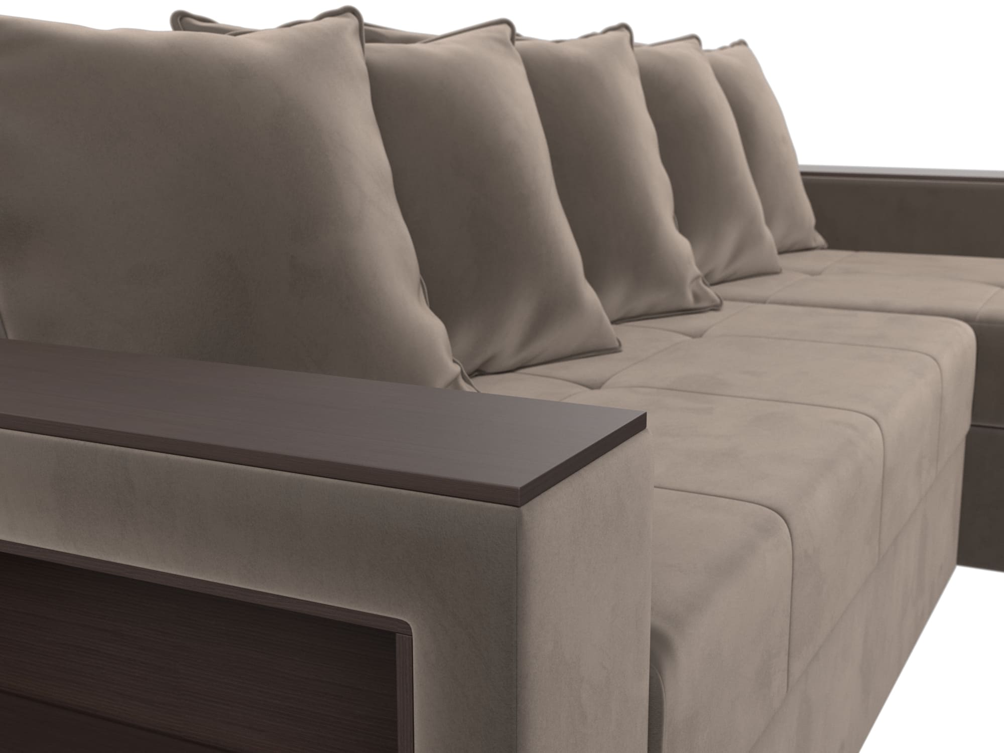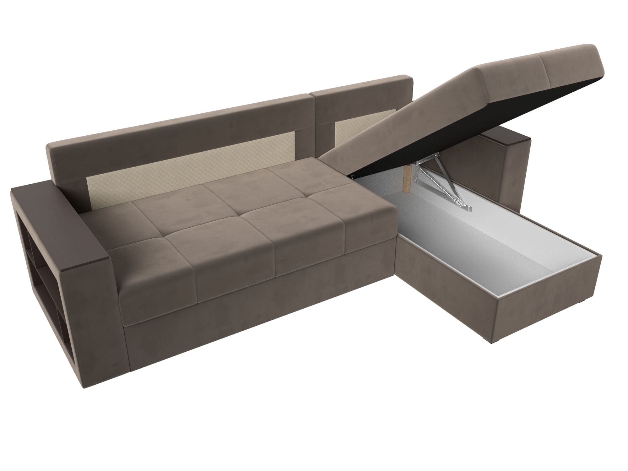 Угловой диван на ножках из серии Дубай Лайт станет функциональным дополнением гостиной. Мягкое сиденье и удобные подлокотники способствуют комфортабельному отдыху. Подлокотники выполняют функцию столика, а удобные боковые полочки.