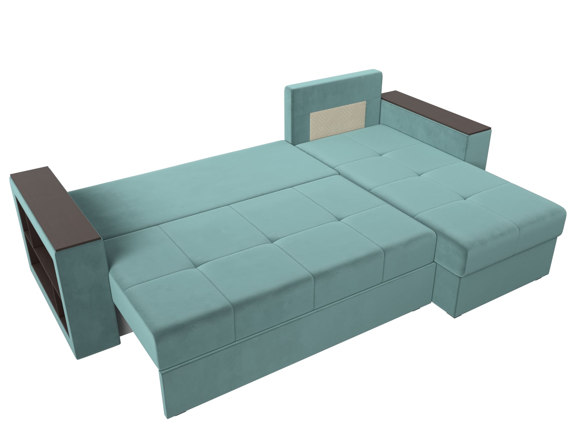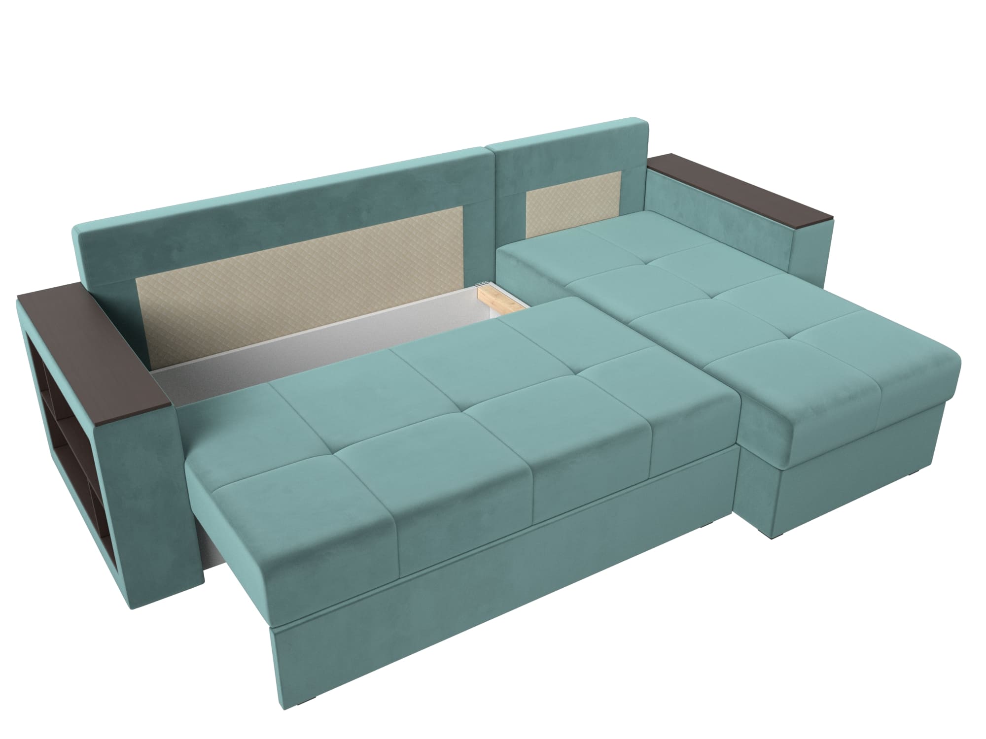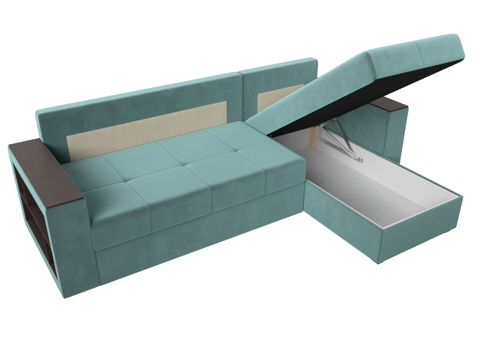 Угловой диван на ножках из серии Дубай Лайт станет функциональным дополнением гостиной. Мягкое сиденье и удобные подлокотники способствуют комфортабельному отдыху. Подлокотники выполняют функцию столика, а удобные боковые полочки.