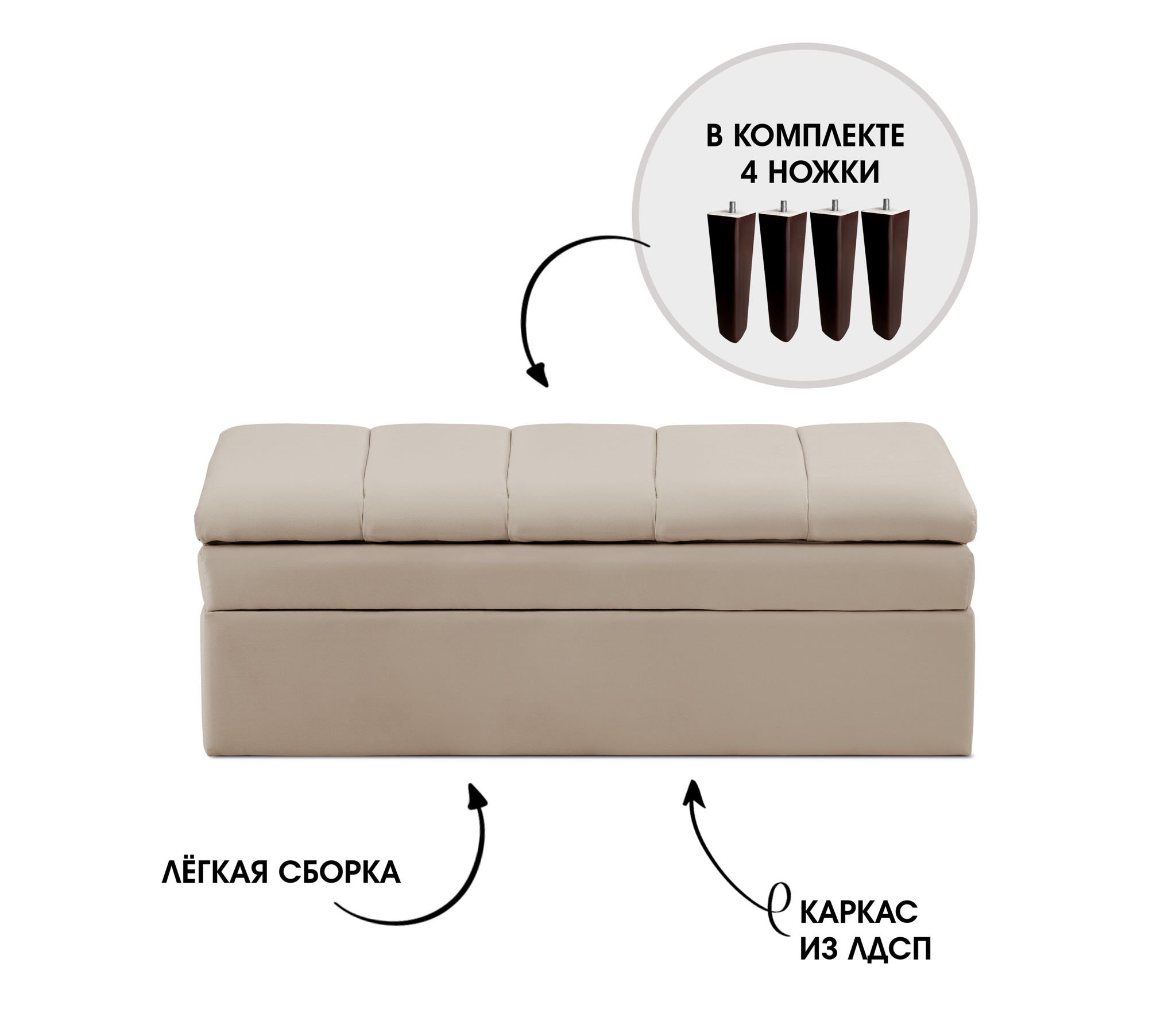 Имеется вместительный ящик для хранения.