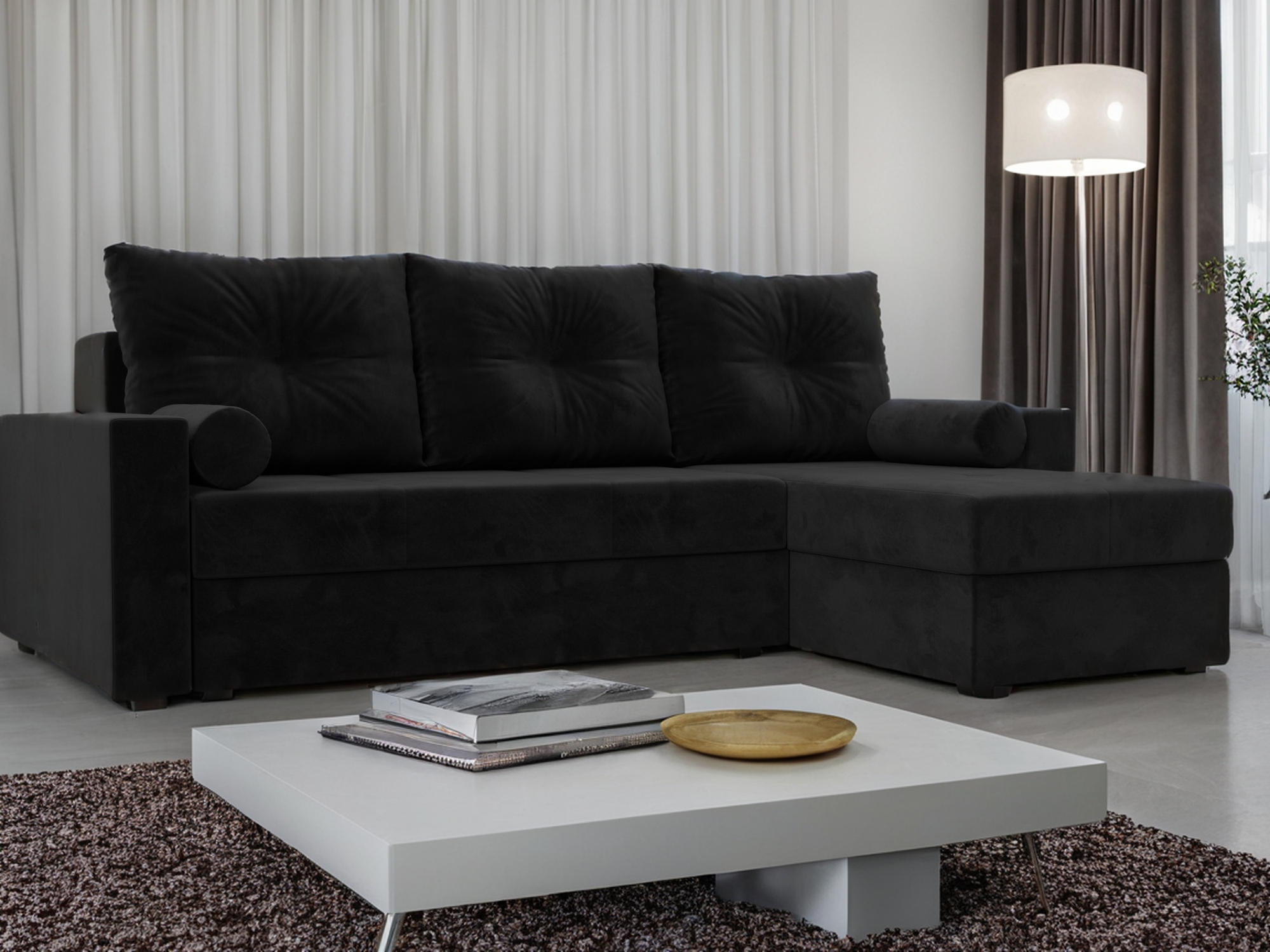 Отзывы о Столплит Диван угловой Верона Лайт правый угол, велюр Черный