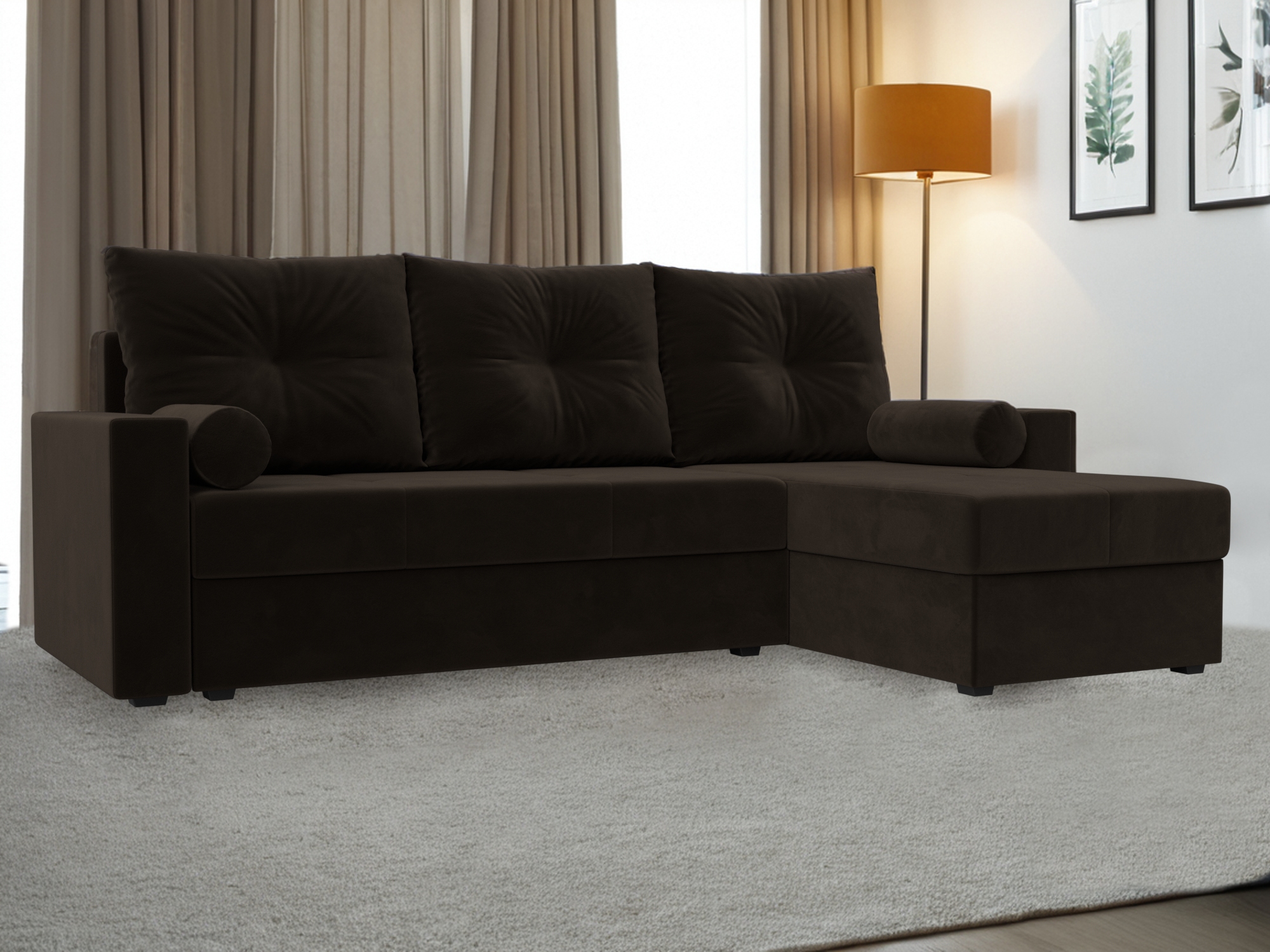 Верона Лайт – комфортный угловой диван в сдержанном дизайне. Спинка дополнена мягкими подушками. Подлокотники выполнены в классической форме. Конструкция функциональна, трансформируется в широкую кровать.