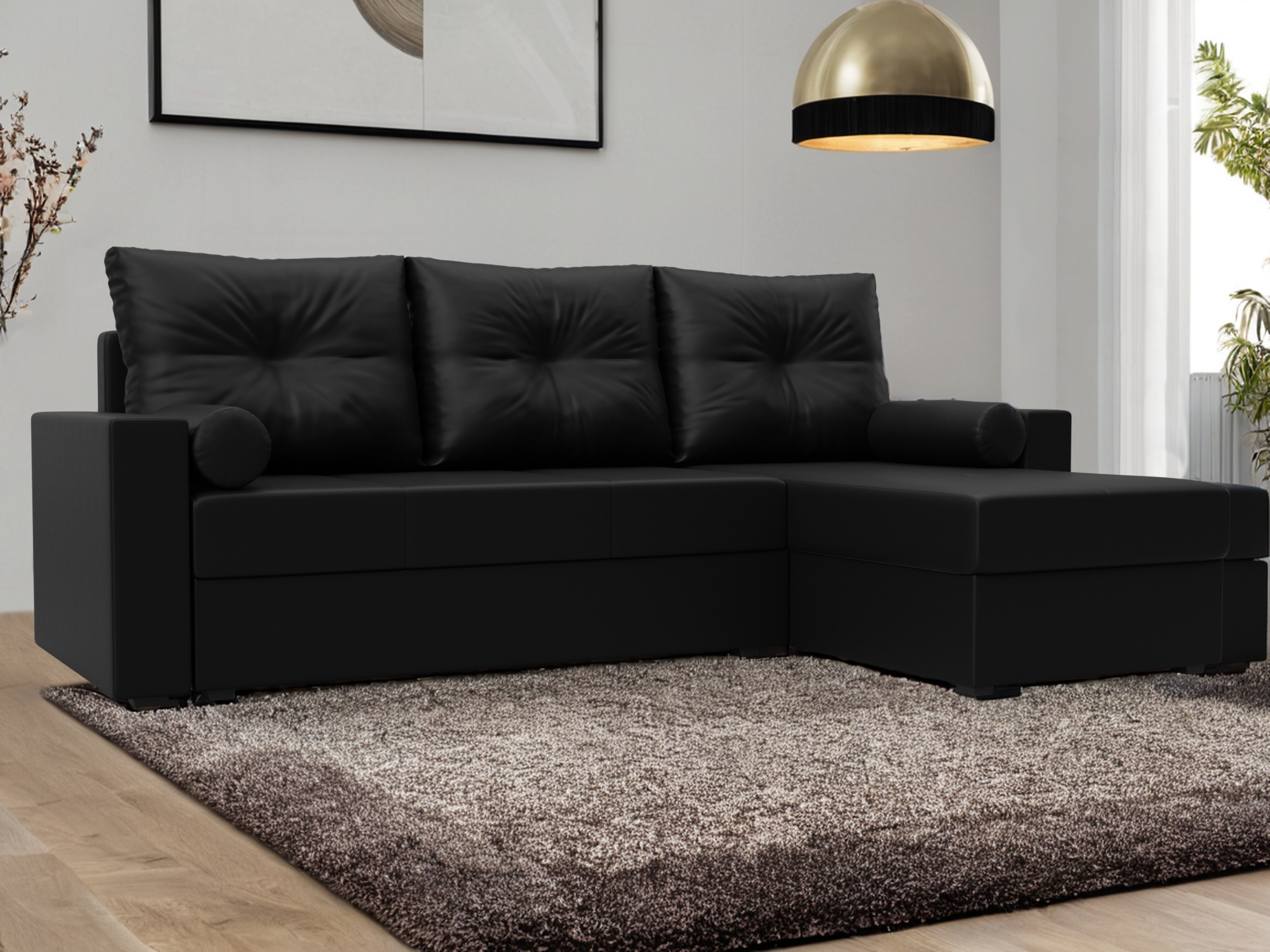 Отзывы о Столплит Диван угловой Верона Лайт правый угол, экокожа Черный