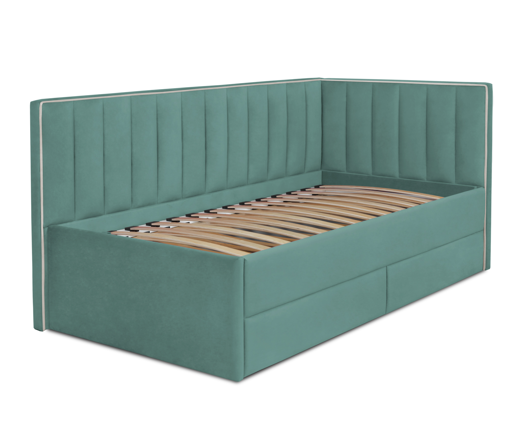 Отзывы о Столплит Кровать угловая с дополнительным спальным местом Порше, микровелюр Аквамарин