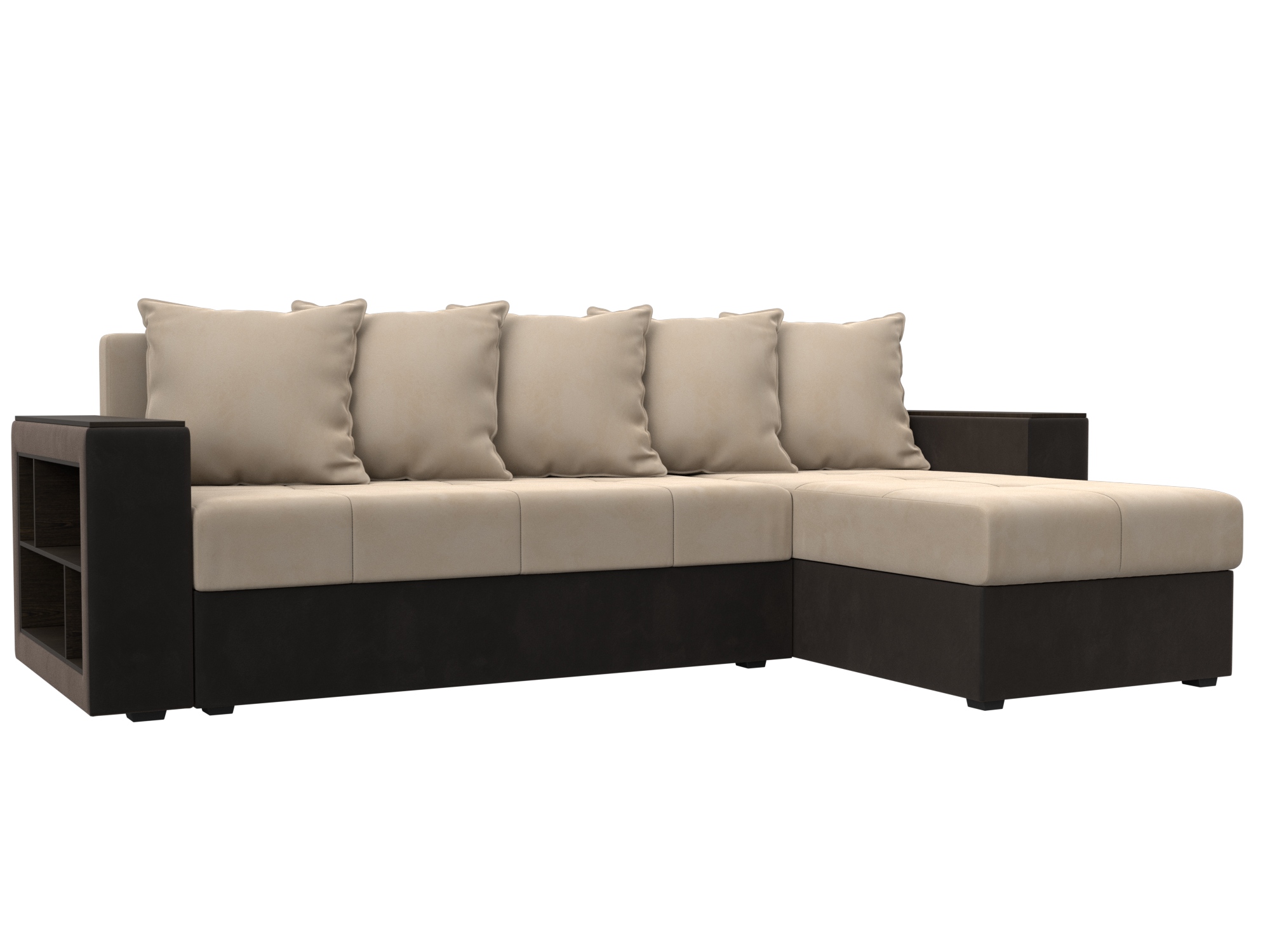 Отзывы о Столплит Диван угловой Дубай Лайт угол универсальный, велюр/экокожа Бежевый/ Коричневый