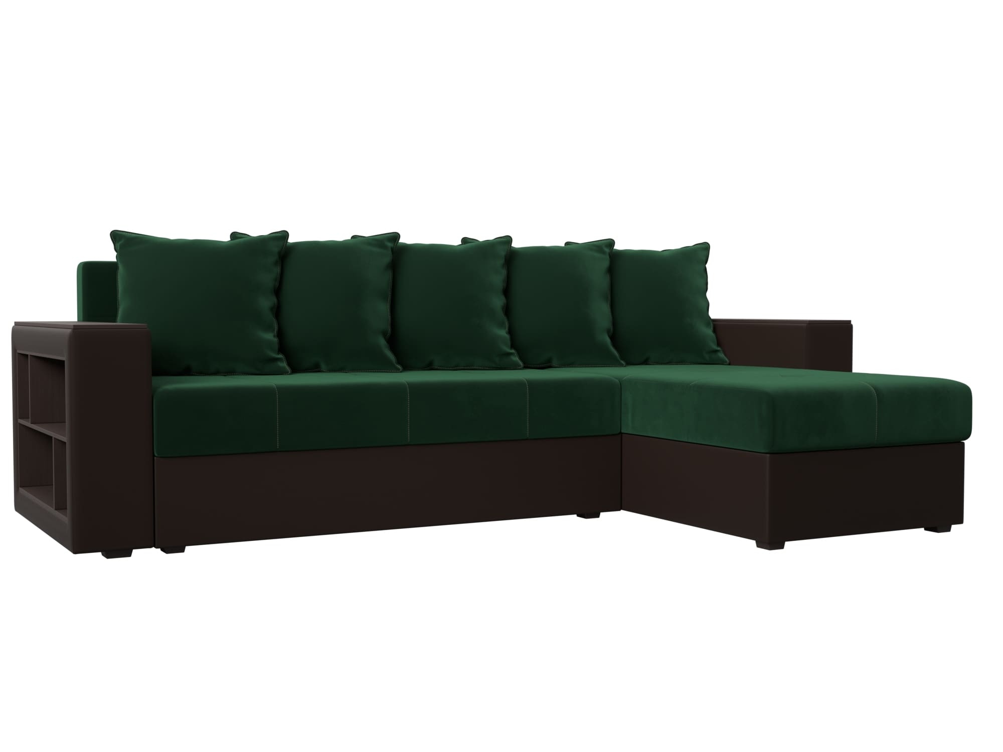Отзывы о Столплит Диван угловой Дубай Лайт, велюр/экокожа, правый угол Зеленый/Темно-коричневый