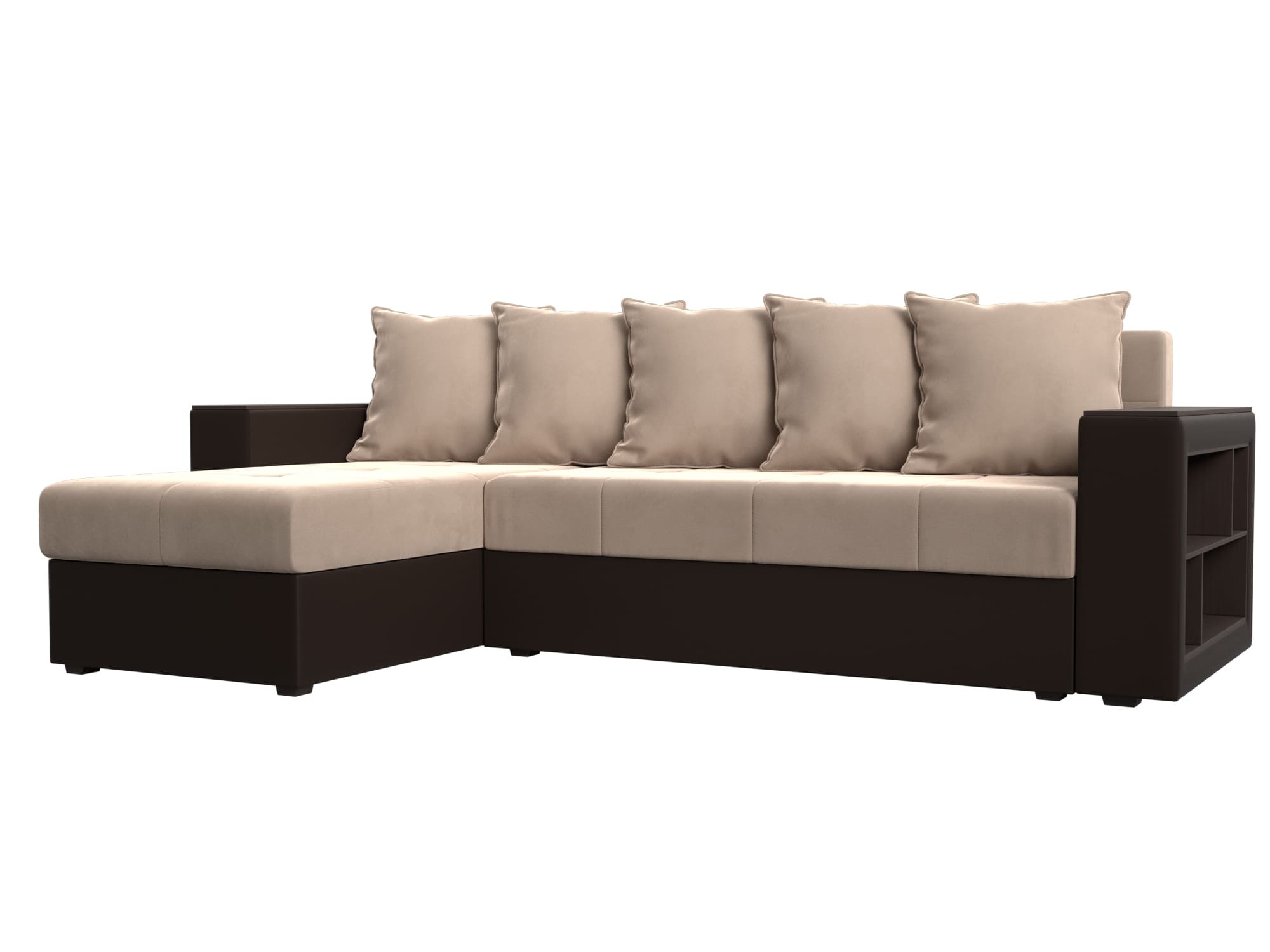 Отзывы о Столплит Диван угловой Дубай Лайт, велюр/экокожа, левый угол Бежевый/Коричневый