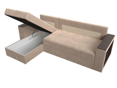 Угловой диван на ножках из серии Дубай Лайт станет функциональным дополнением гостиной. Мягкое сиденье и удобные подлокотники способствуют комфортабельному отдыху. Подлокотники выполняют функцию столика, а удобные боковые полочки.