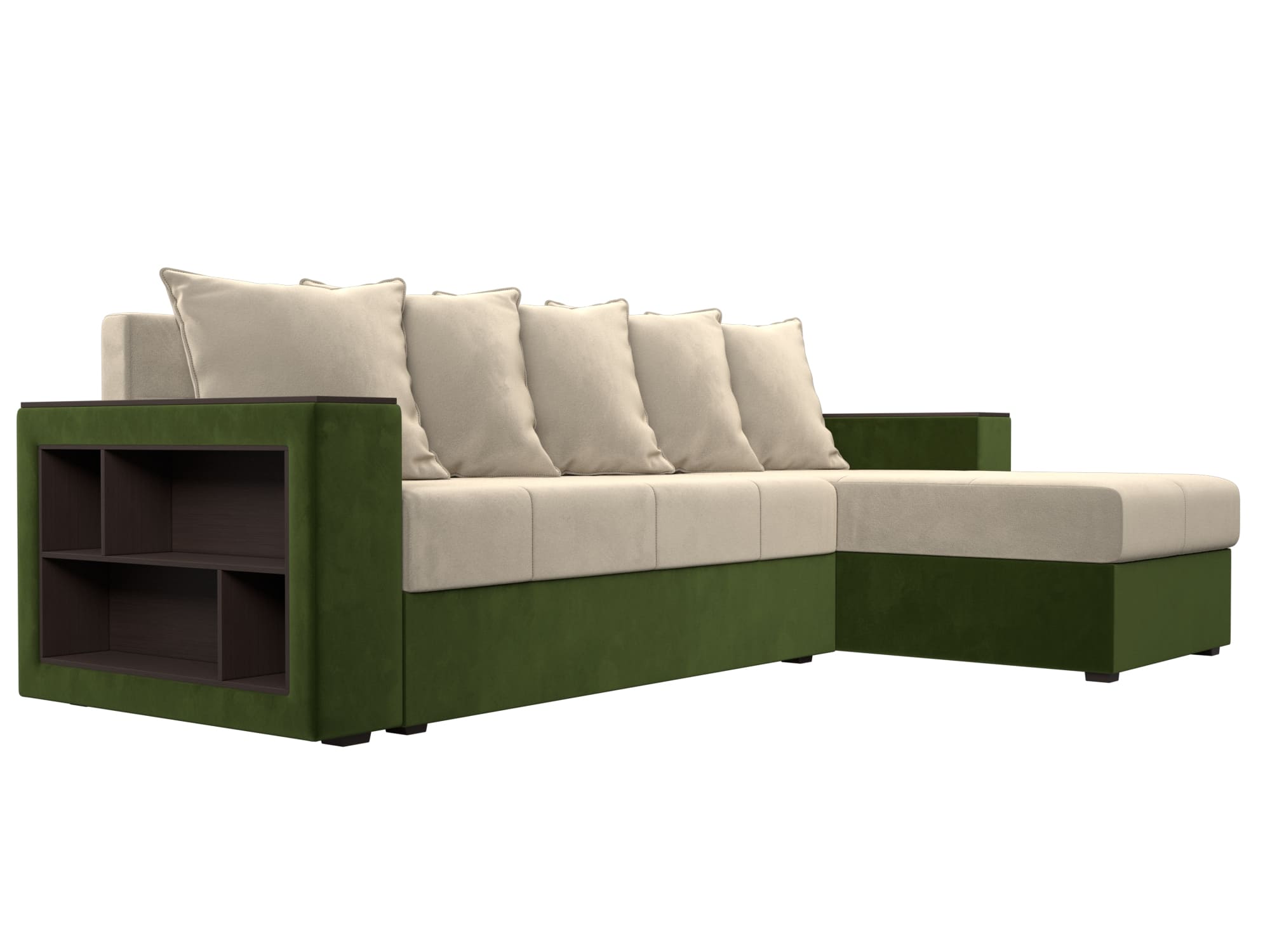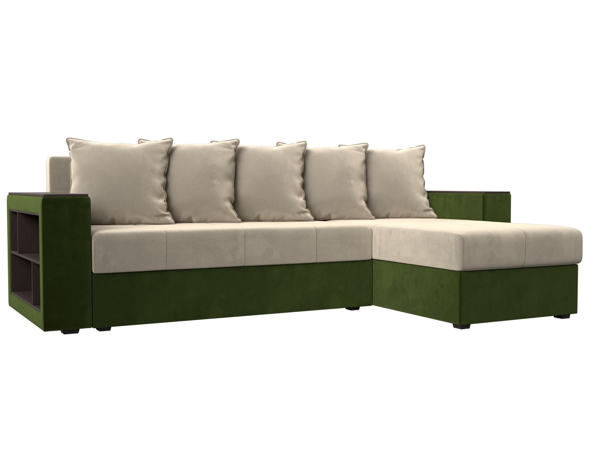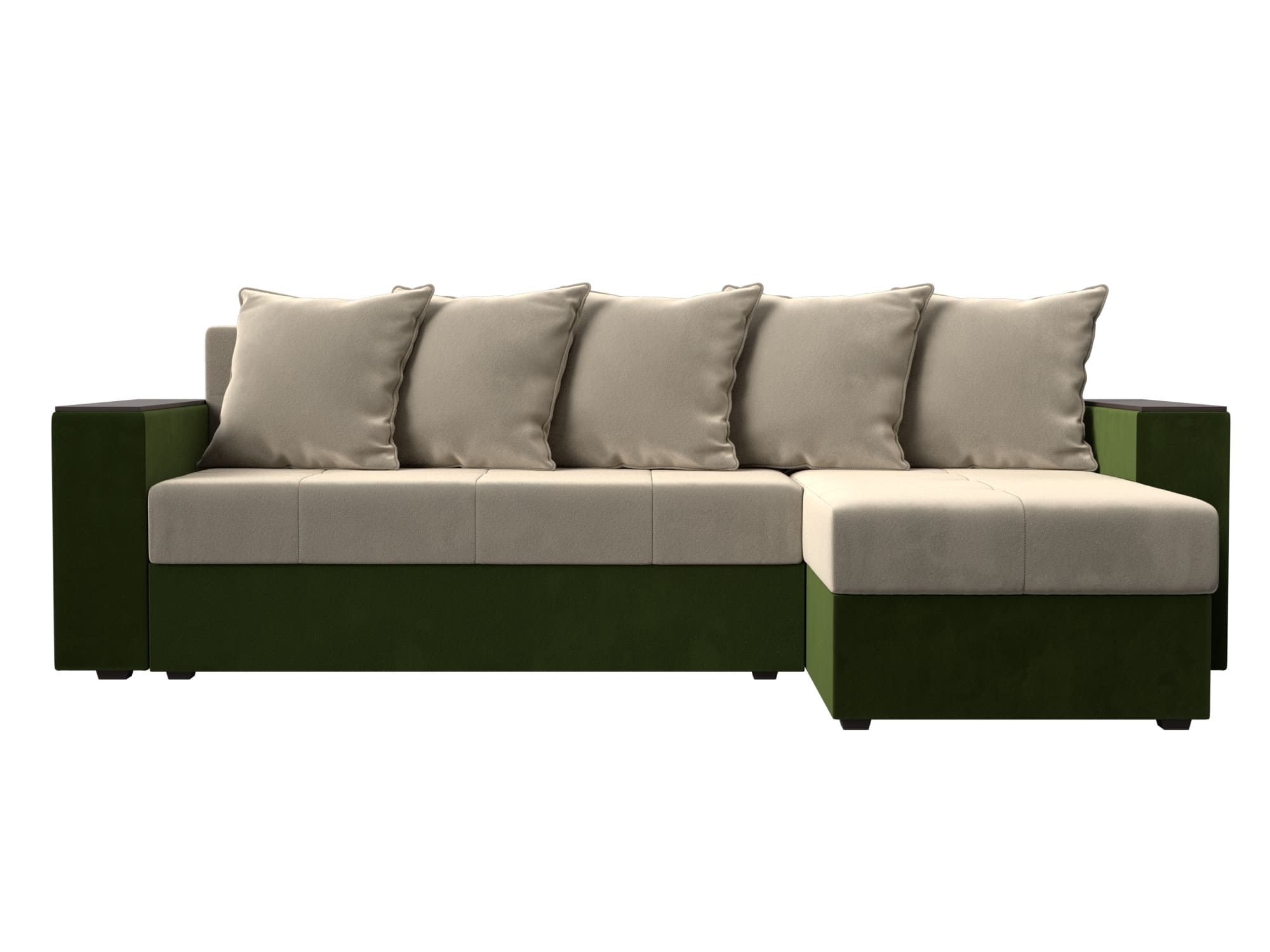 Отзывы о Столплит Диван угловой Дубай Лайт, микровельвет, правый угол бежевый/зеленый