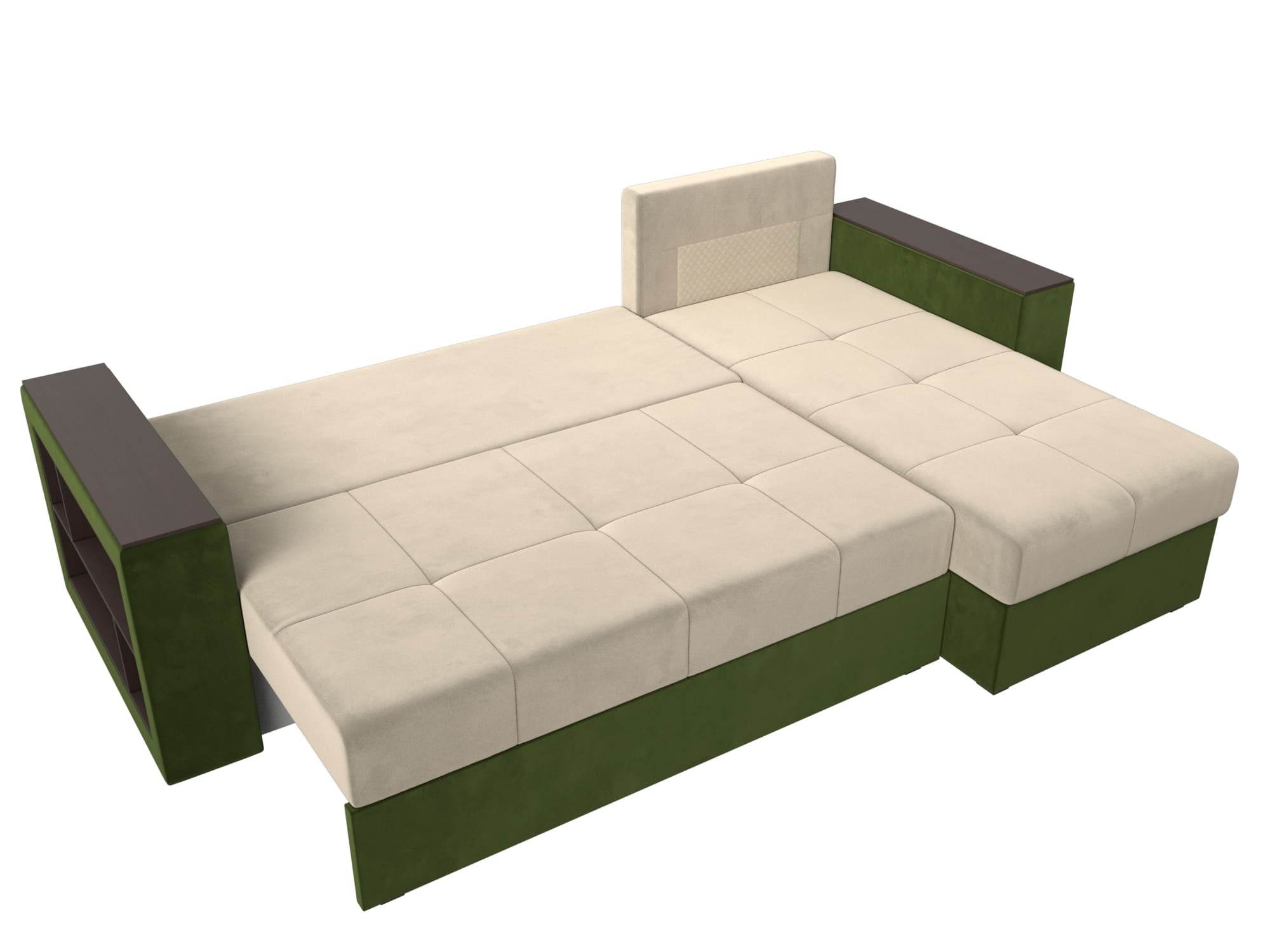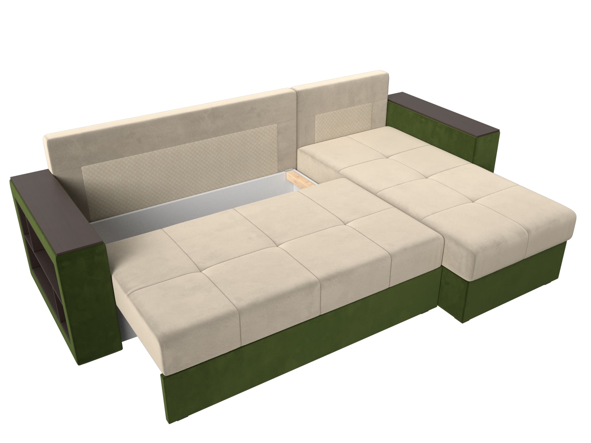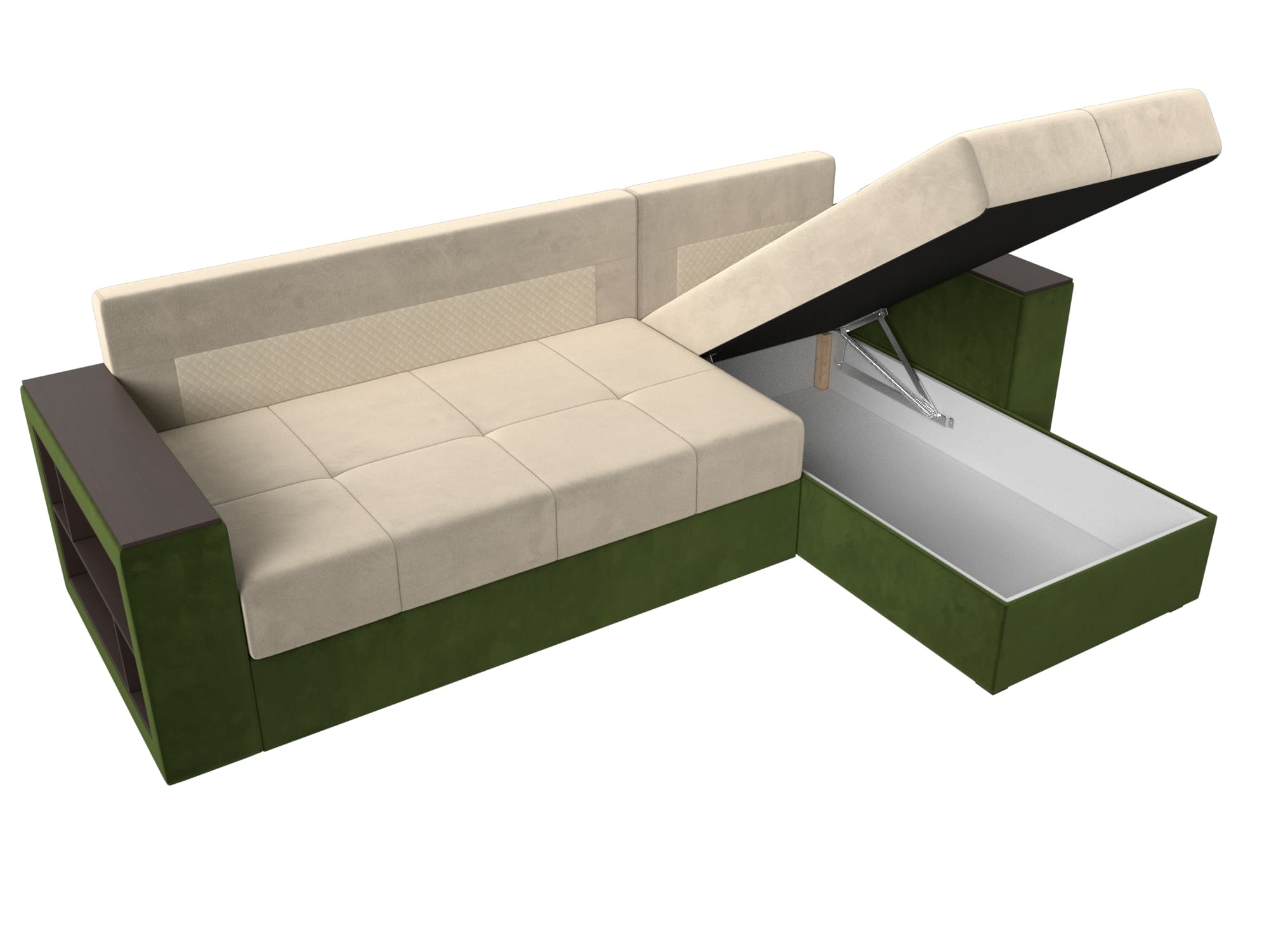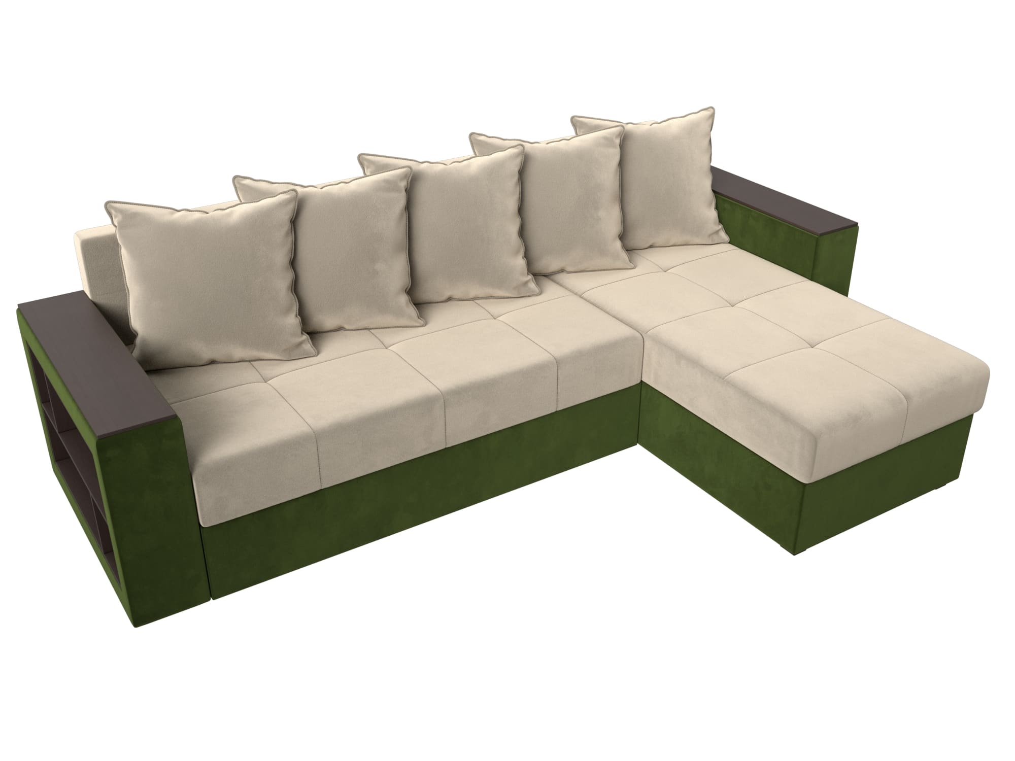 Отзывы о Столплит Диван угловой Дубай Лайт, микровельвет, правый угол бежевый/зеленый