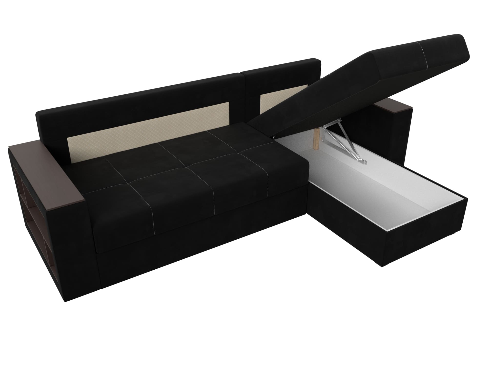 Угловой диван на ножках из серии Дубай Лайт станет функциональным дополнением гостиной. Мягкое сиденье и удобные подлокотники способствуют комфортабельному отдыху. Подлокотники выполняют функцию столика, а удобные боковые полочки.