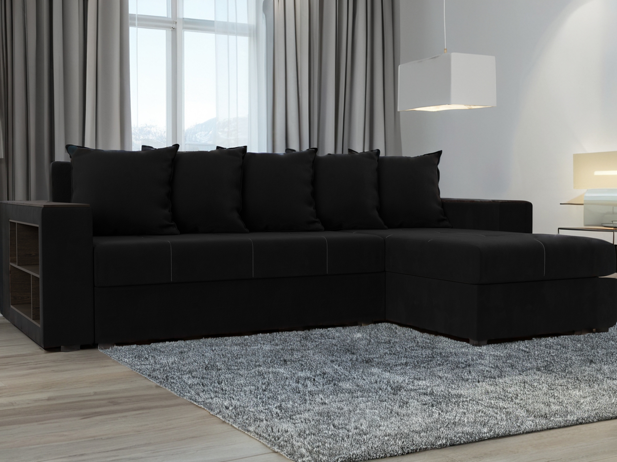 Отзывы о Столплит Диван угловой Дубай Лайт, микровельвет, правый угол Вельвет Черный