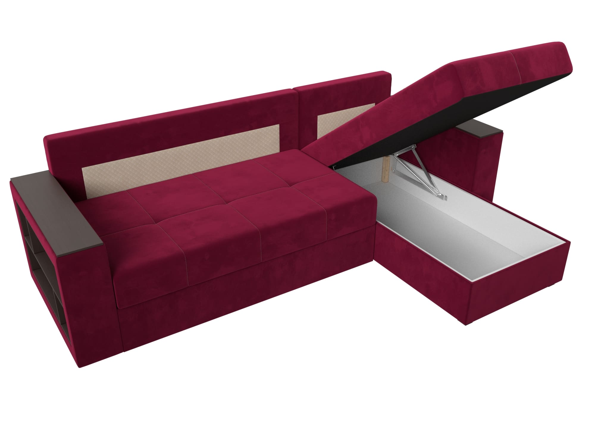 Угловой диван Дубай Лайт представляет собой бюджетный вариант современного раскладного дивана-кровати с интересным дизайном и прочным каркасом из ДСП, ЛДСП, бруса и фанеры. Пять больших мягких съемных подушек дополняют спинку изделия.Верх подлокотников – деревянные мини-столики. Под сиденьем расположены вместительные ящики для белья. Устойчивость и надежность конструкции обеспечивают пластиковые крепкие ножки. Угловой диван Дубай Лайт прекрасно впишется в интерьер как жилой комнаты, так и офиса. В качестве варианта для сна модель «Дубай Лайт» тоже отлично подойдет. При раскладывании длина автоматически станет шириной, что позволит свободно лечь двоим. Широкий выбор расцветок позволяет подобрать оптимальный вариант под стилистику помещения.