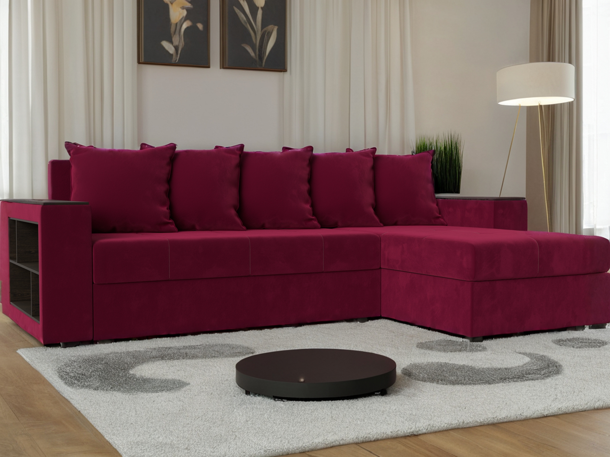 Отзывы о Столплит Диван угловой Дубай Лайт угол универсальный, микровельвет Бордовый