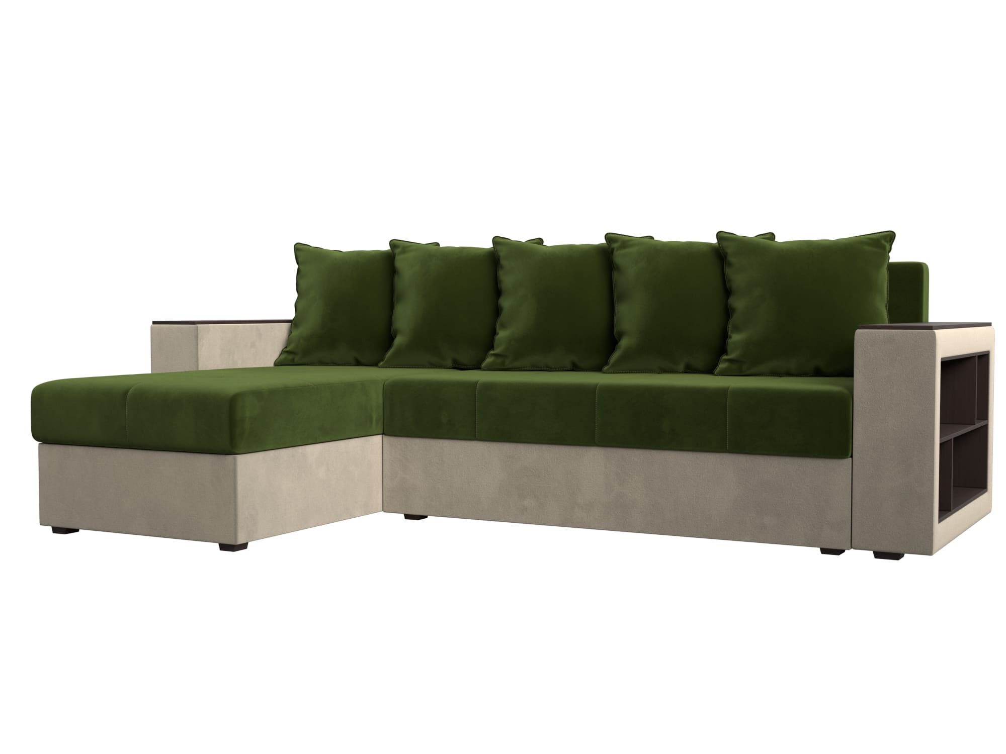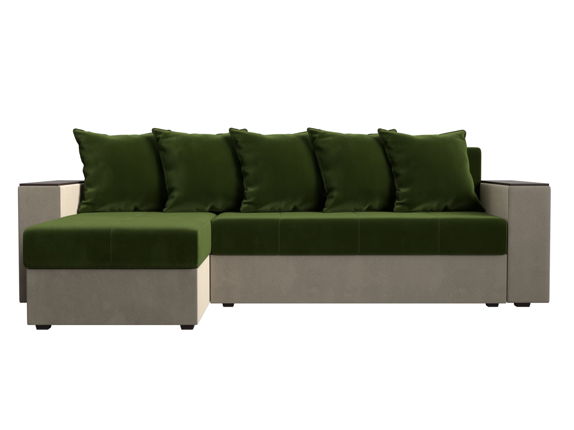 Отзывы о Столплит Диван угловой Дубай Лайт, микровельвет, левый угол Зеленый/Бежевый
