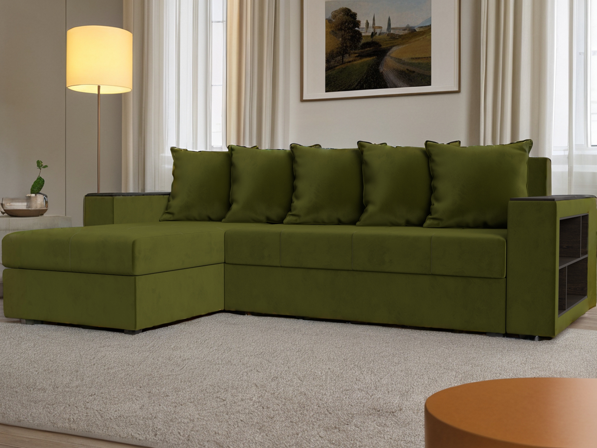 Отзывы о Столплит Диван угловой Дубай Лайт, микровельвет, левый угол Зеленый вельвет