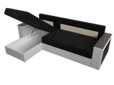 Угловой диван на ножках из серии Дубай Лайт станет функциональным дополнением гостиной. Мягкое сиденье и удобные подлокотники способствуют комфортабельному отдыху. Подлокотники выполняют функцию столика, а удобные боковые полочки.