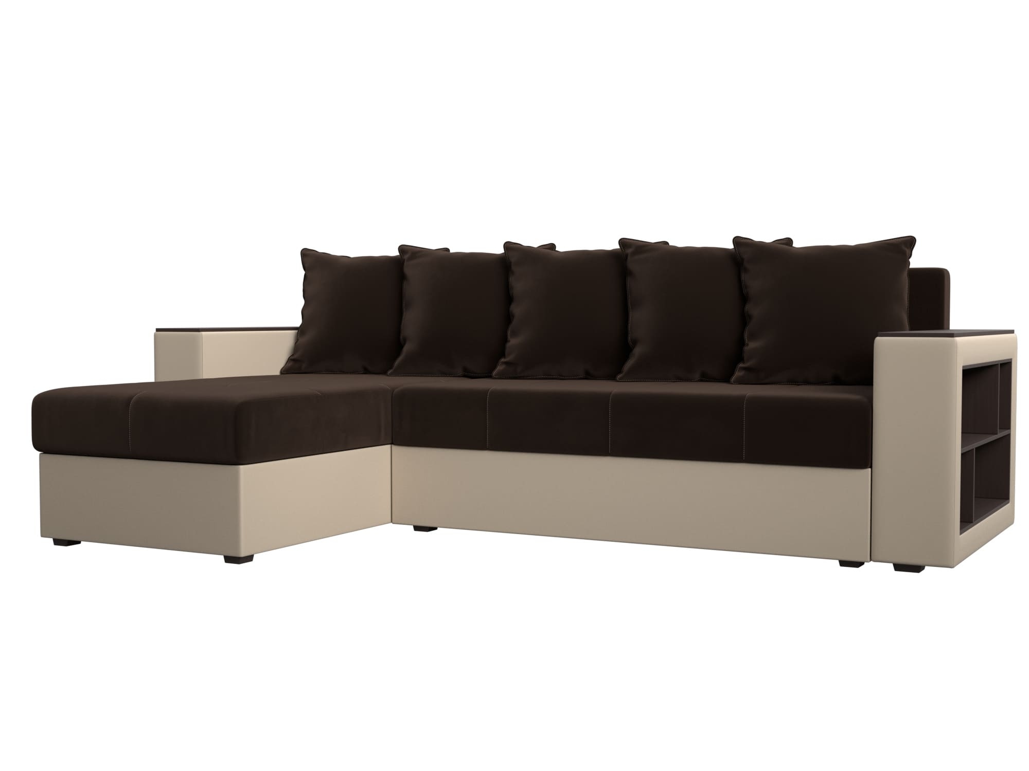 Отзывы о Столплит Диван угловой Дубай Лайт, микровельвет/экокожа, левый угол Коричневый/ Бежевый