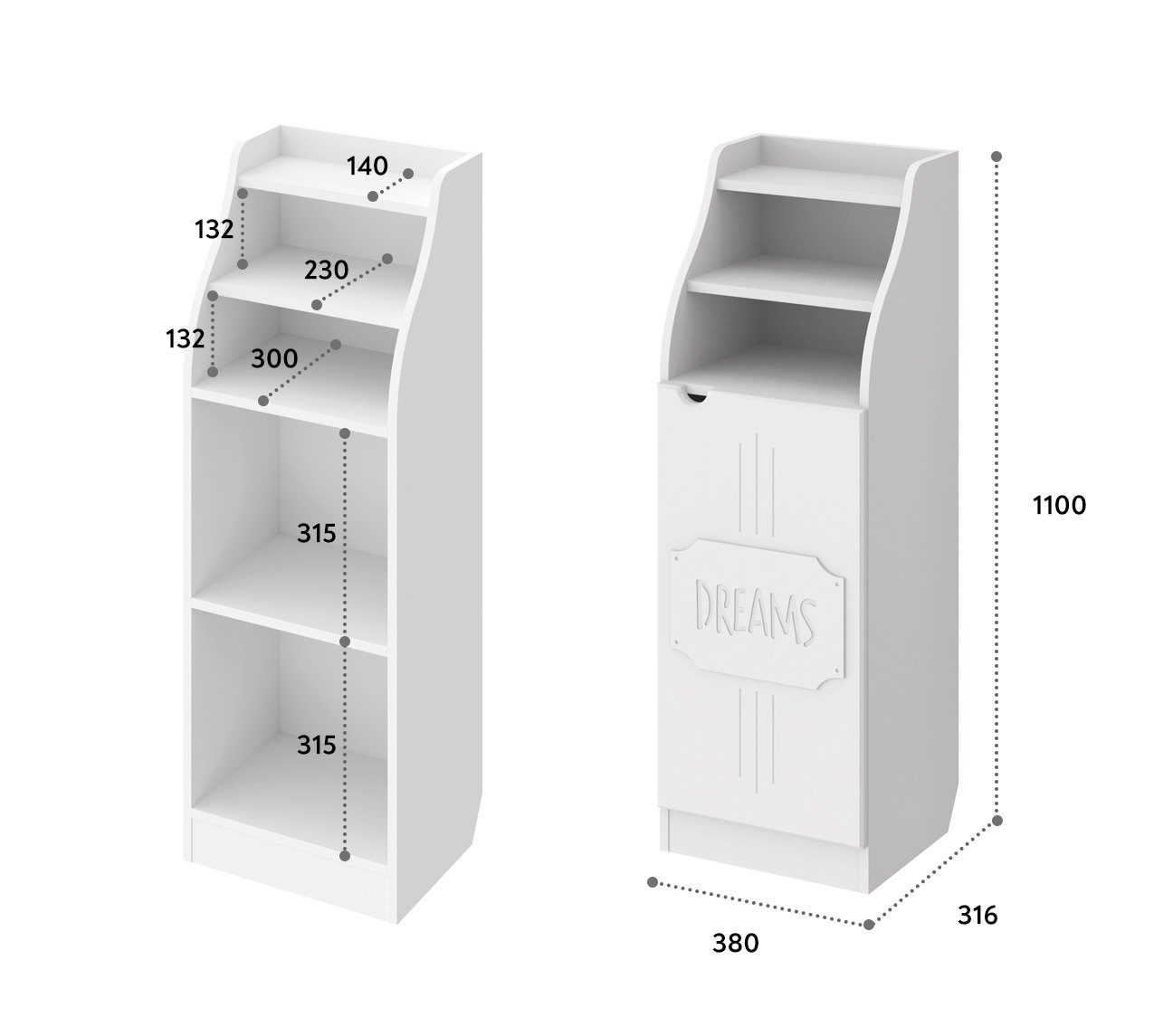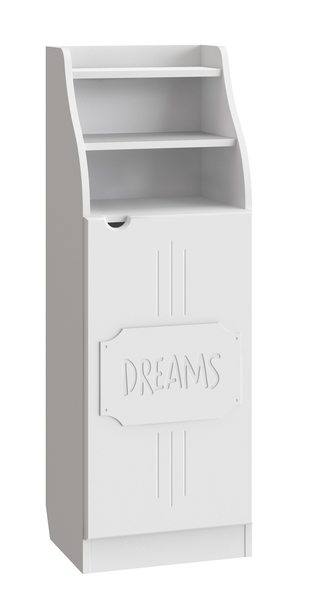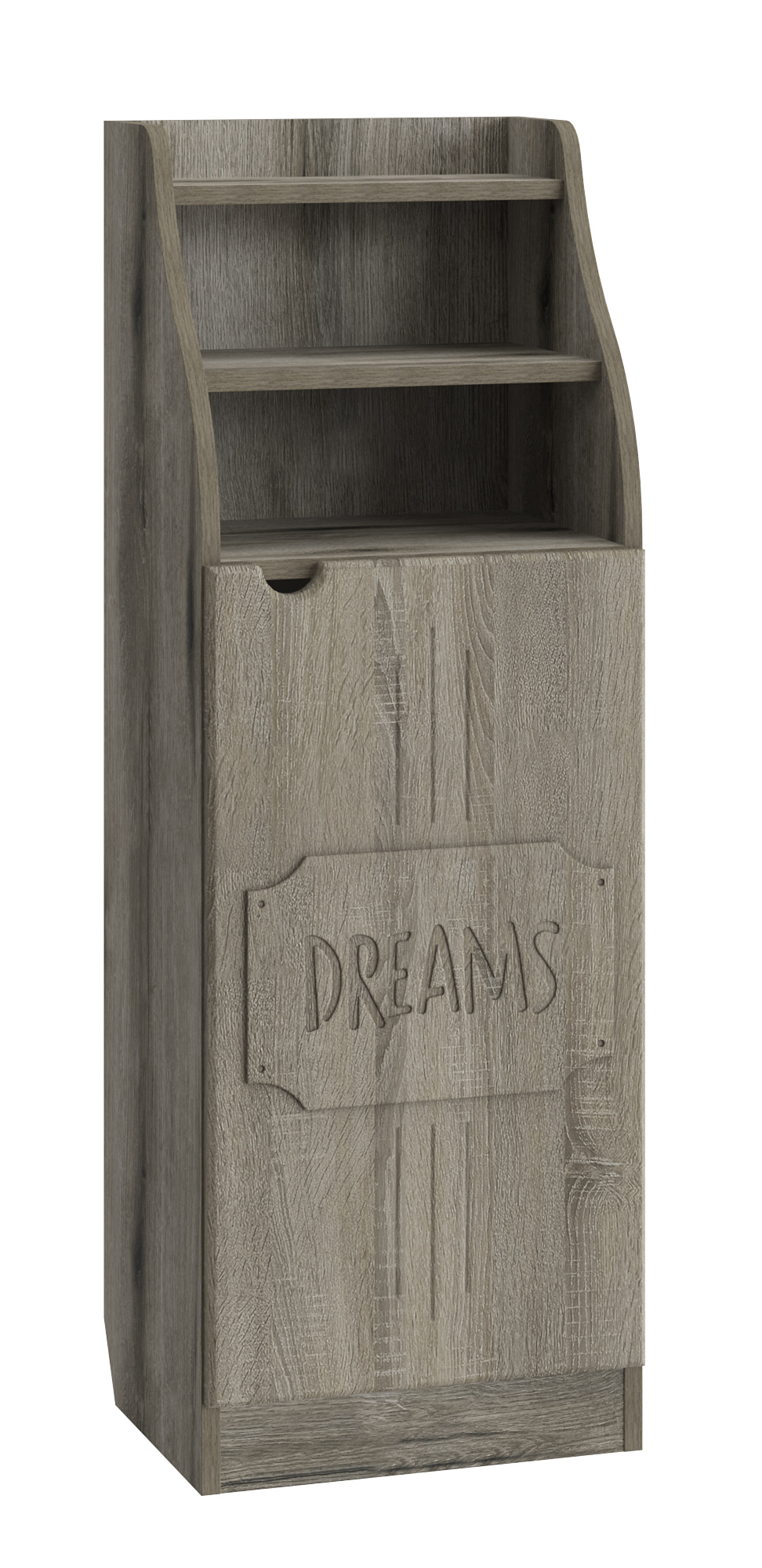 Шкаф ДримСтар ДС-63 прекрасно подойдет для вашей квартиры или загородного дома. Шкаф имеет две открытых верхних ниши и закрытые распашной дверцей полки внизу. Дверца крепится на петли с доводчиками.