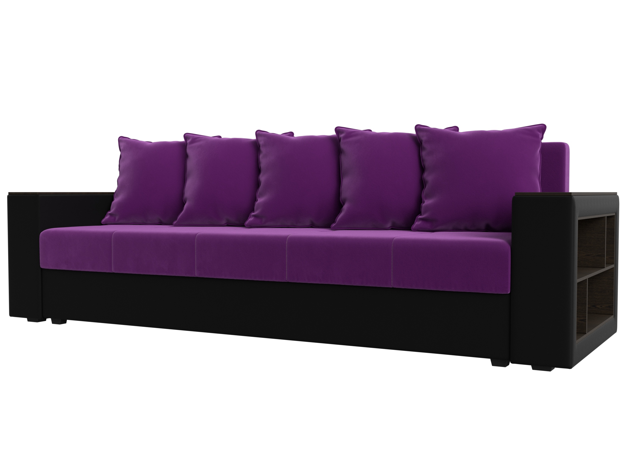Диван прямой Дубай Лайт, микровельвет/экокожа (Фиолетовый/Черный) Код I0000319931