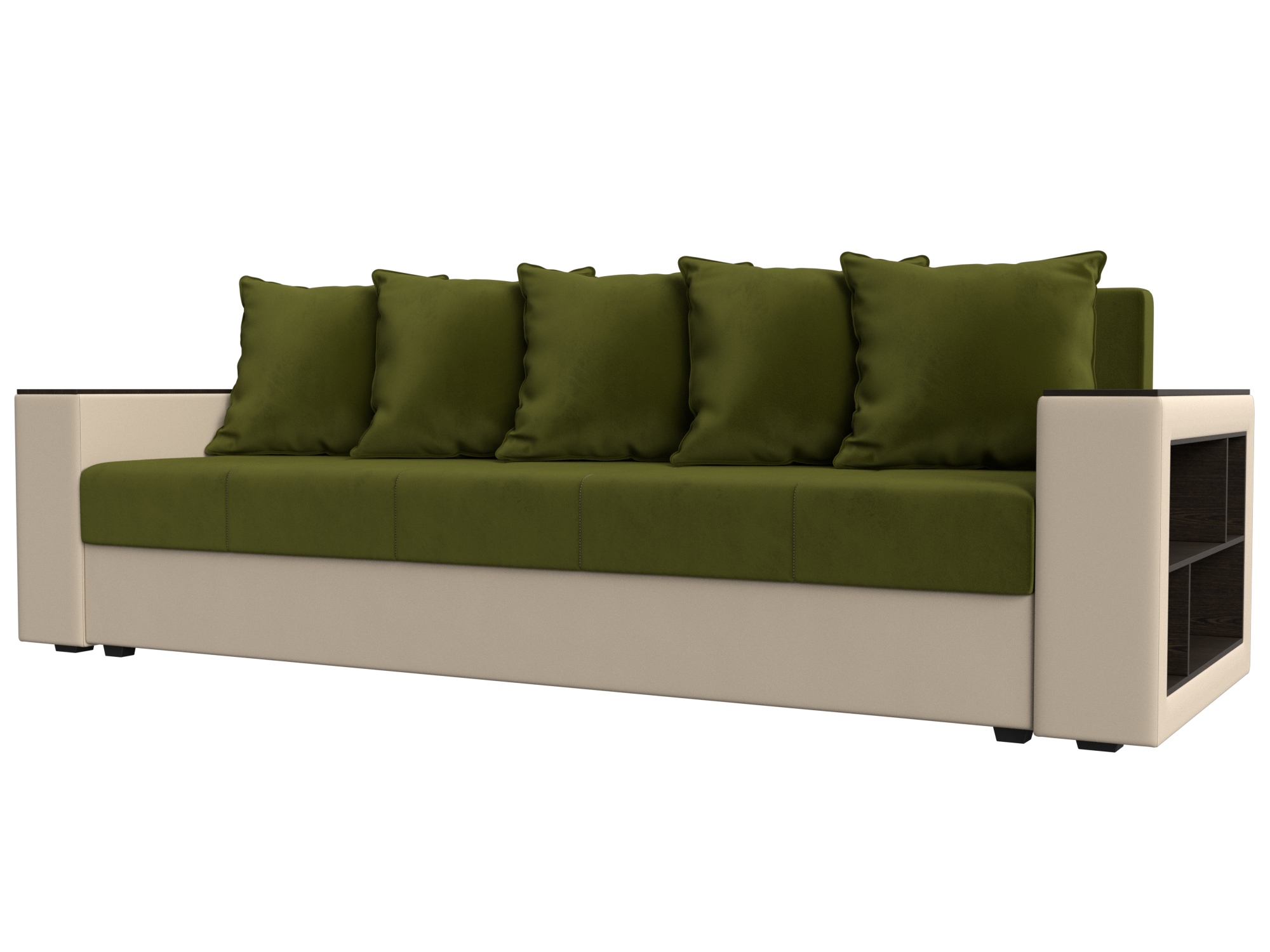 Отзывы о Столплит Диван прямой Дубай Лайт полки справа, микровельвет/экокожа Зеленый/Бежевый
