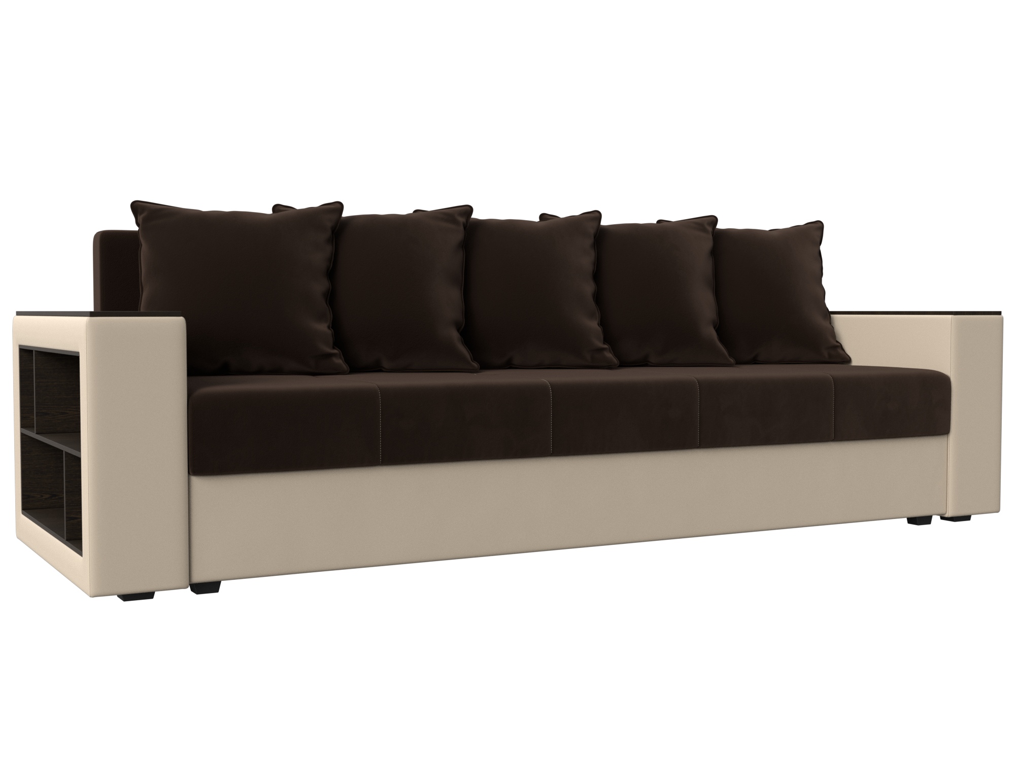 Отзывы о Столплит Диван прямой Дубай Лайт полки слева, микровельвет/экокожа Коричневый/ Бежевый