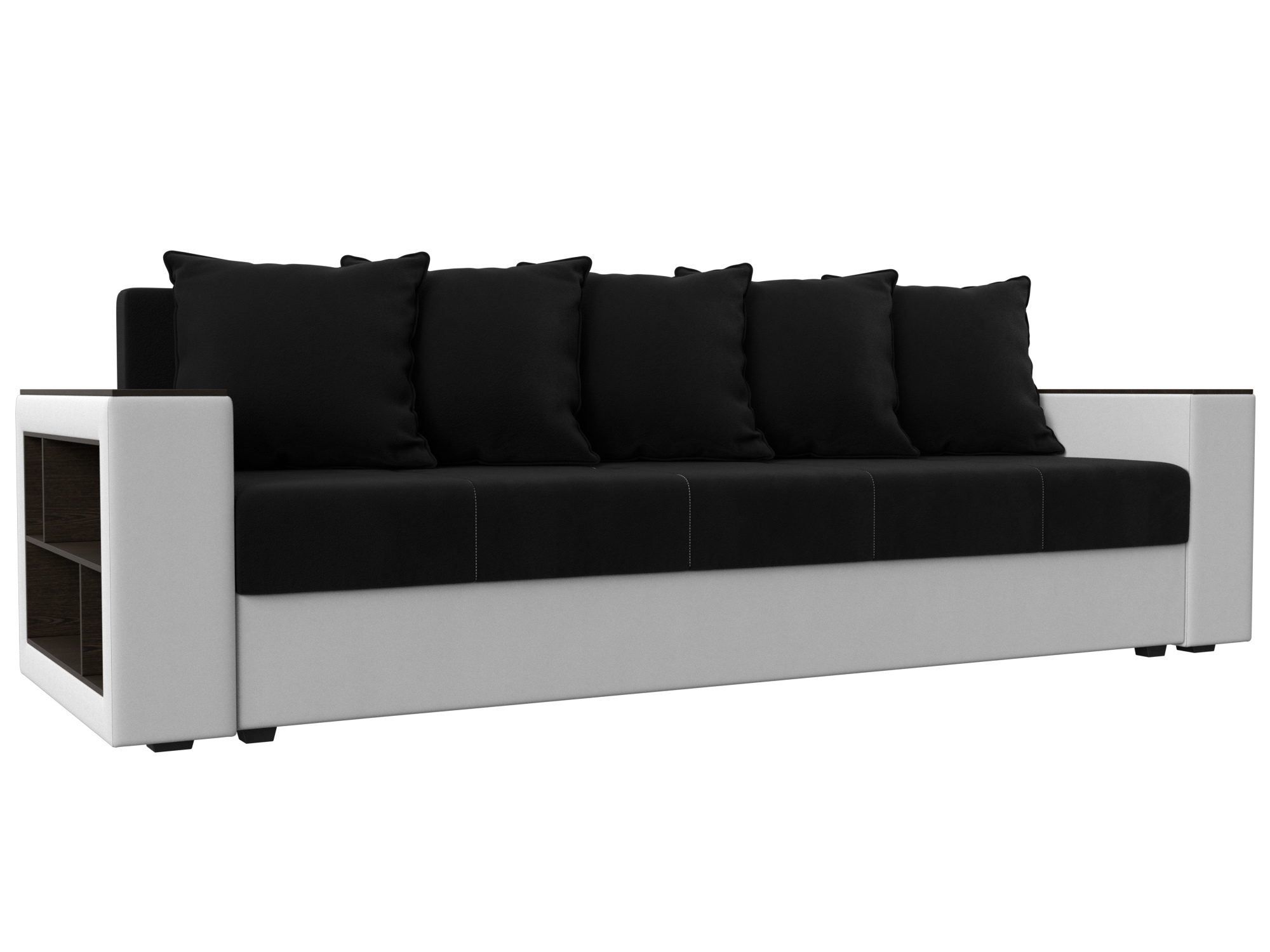 Отзывы о Столплит Диван прямой Дубай Лайт полки слева, микровельвет/экокожа Черный/белый
