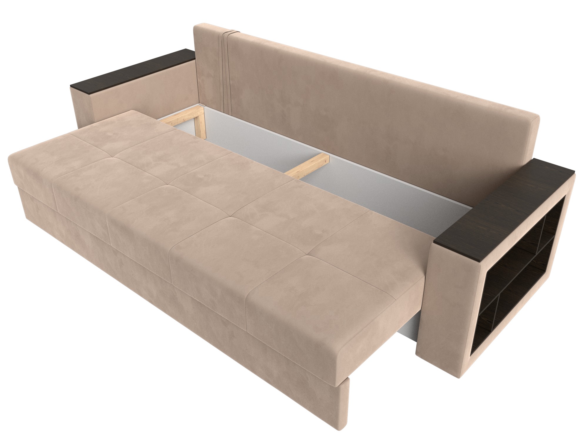 Отзывы о Столплит Диван прямой Дубай Лайт полки справа, велюр Бежевый Velure (Велюр)