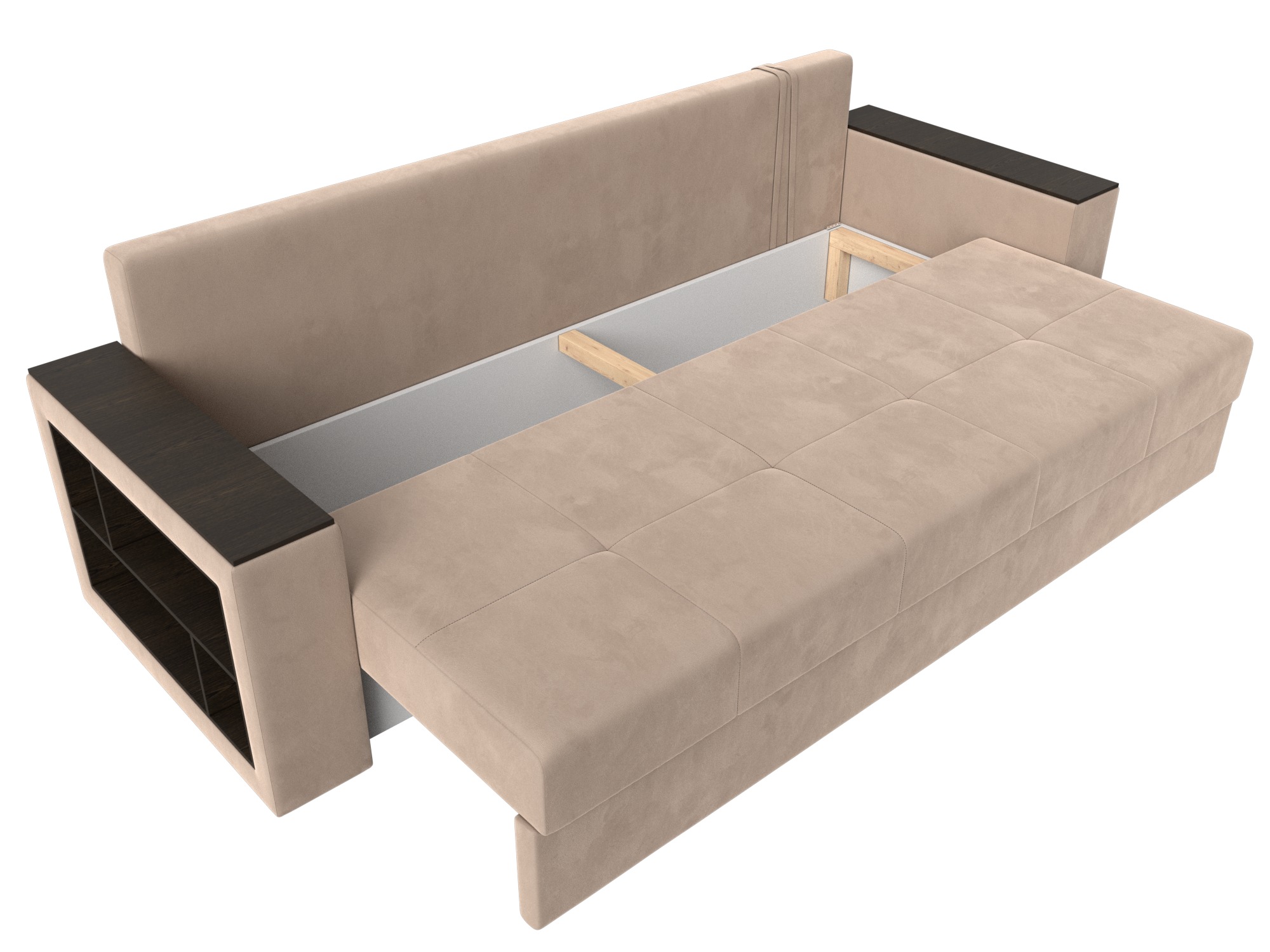 Отзывы о Столплит Диван прямой Дубай Лайт полки слева, велюр Бежевый Velure (Велюр)