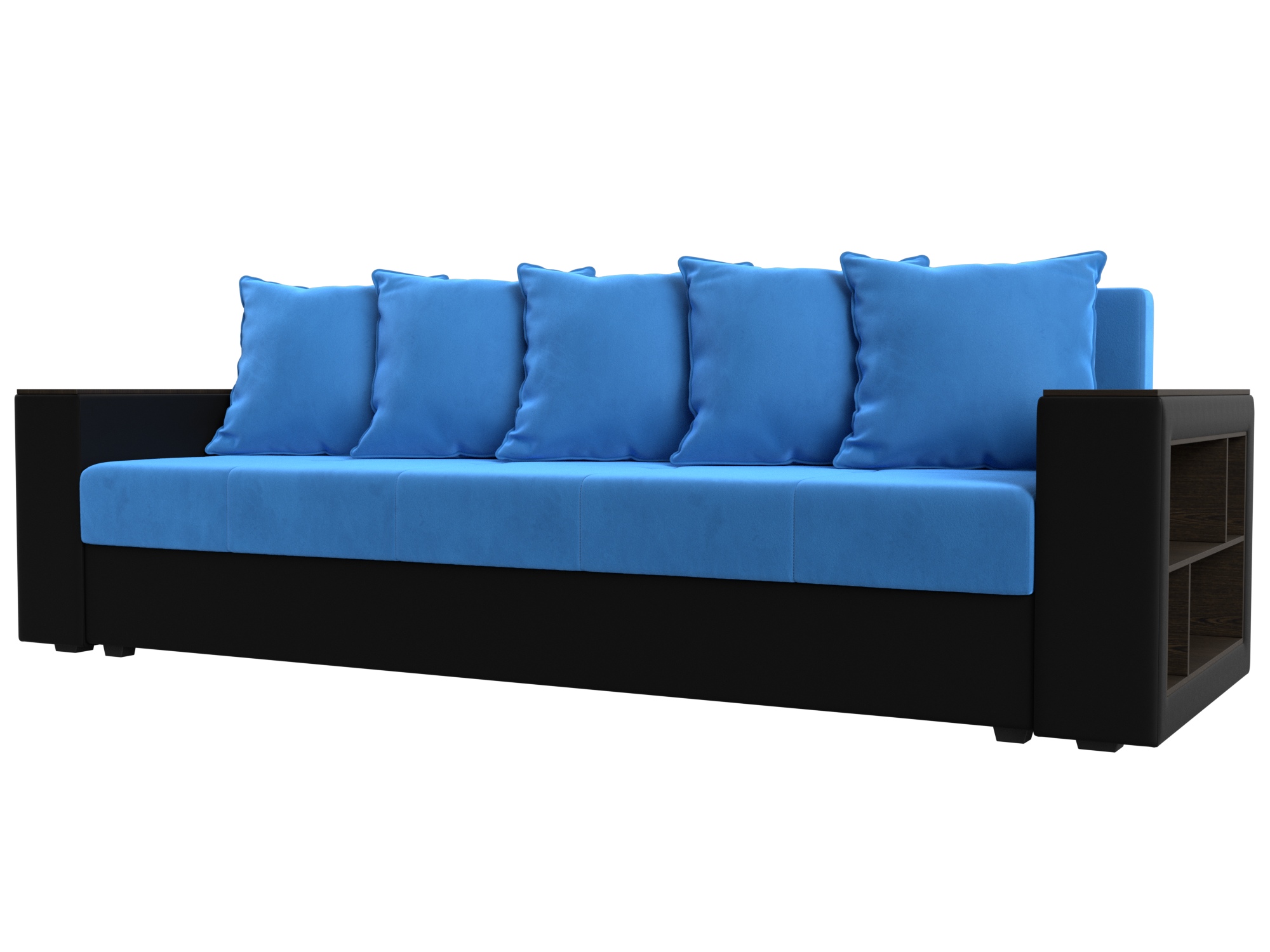 Отзывы о Столплит Диван прямой Дубай Лайт полки справа, велюр/экокожа Голубой