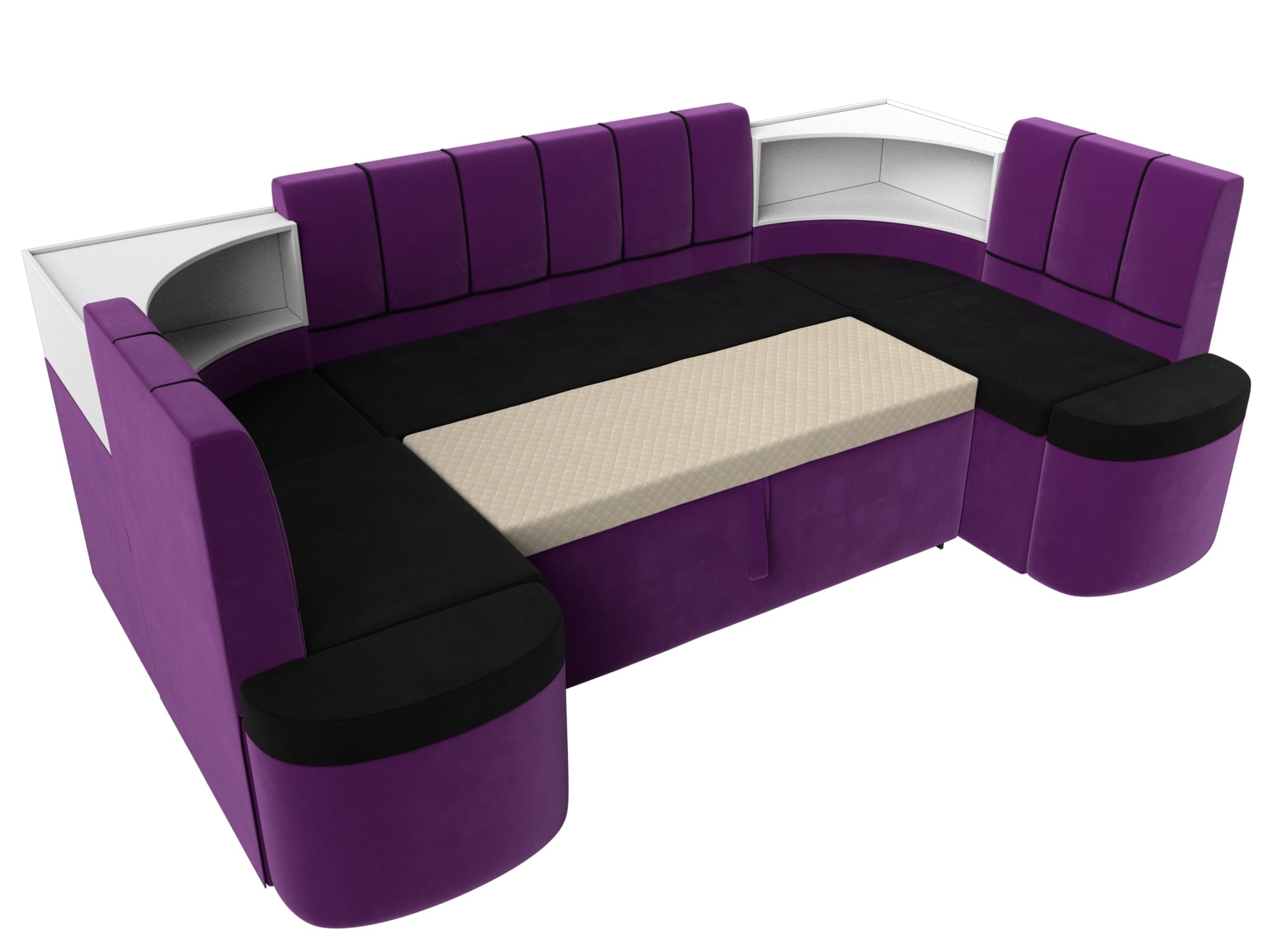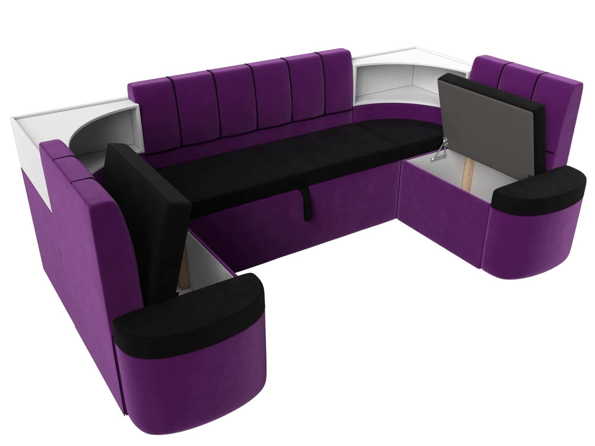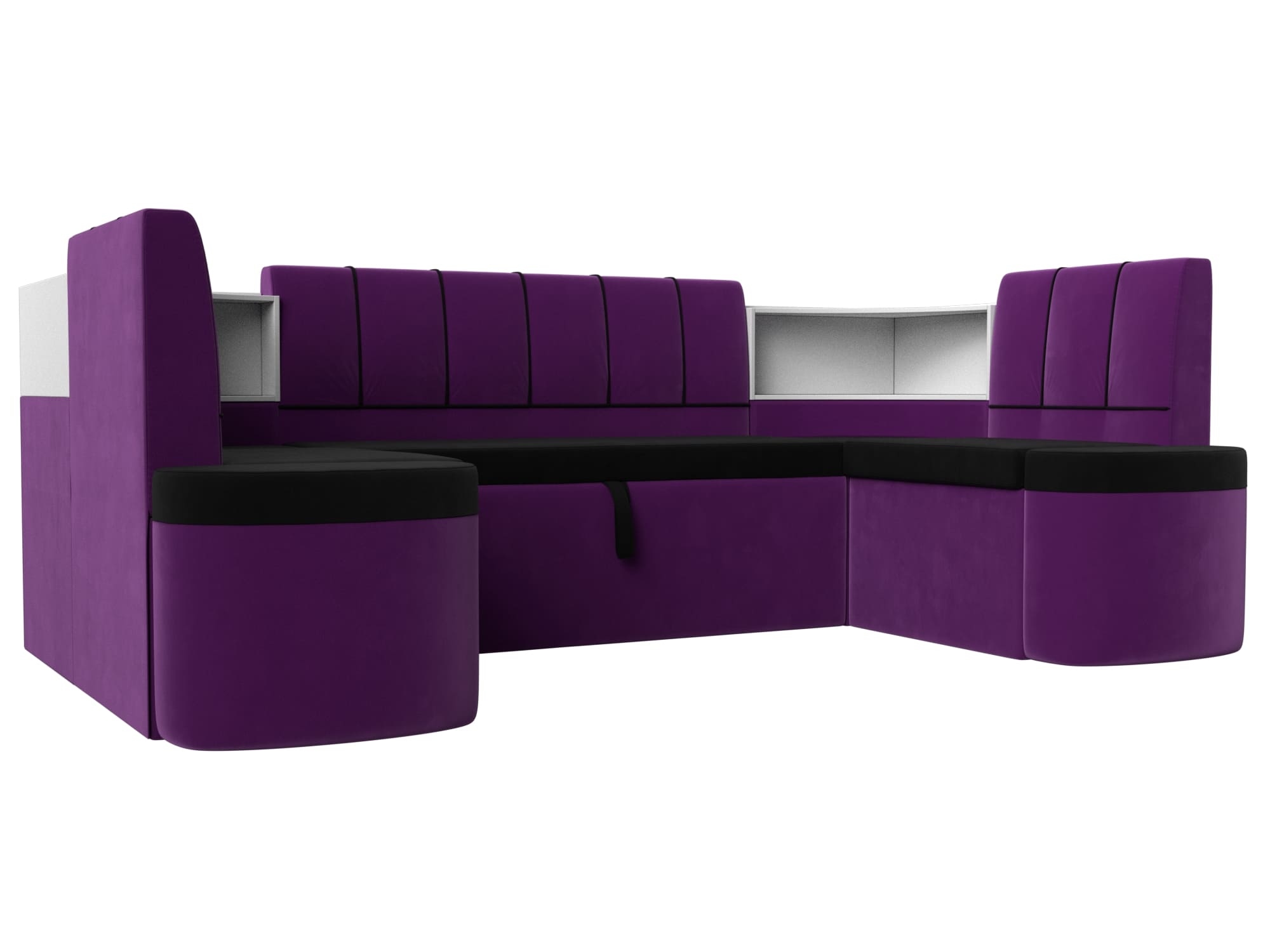 Отзывы о Столплит Кухонный П-образный диван Тефида, микровельвет Черный/Фиолетовый