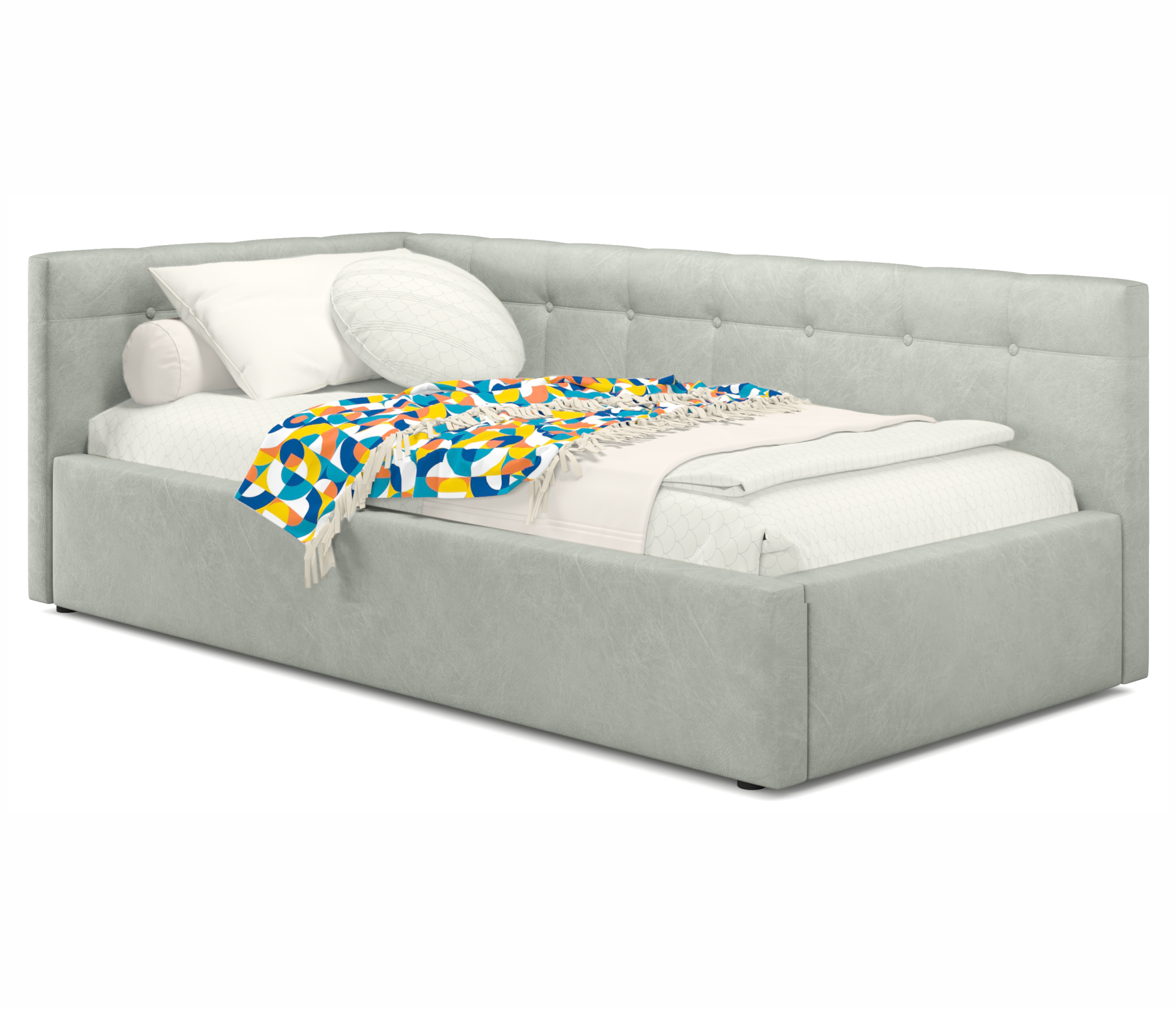 Односпальная кровать-тахта Bonna 900 кожа ортопедическая (Серый) Код I0000323450