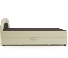 Наполнитель: пенополиуретан (ППУ), пружиный блок, войлок, обивочная ткань. Kомплектация: вместительный ящик для белья.