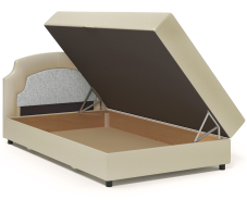 Наполнитель: пенополиуретан (ППУ), пружиный блок, войлок, обивочная ткань. Kомплектация: вместительный ящик для белья.